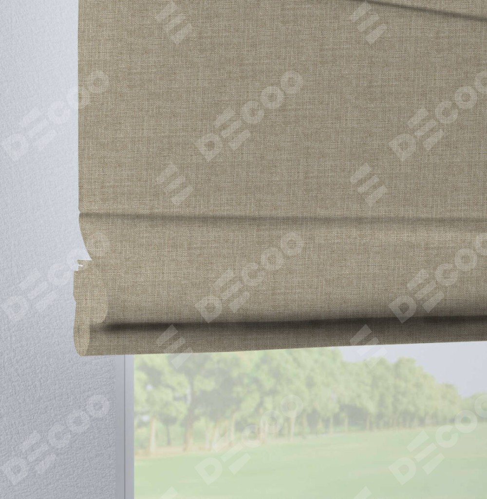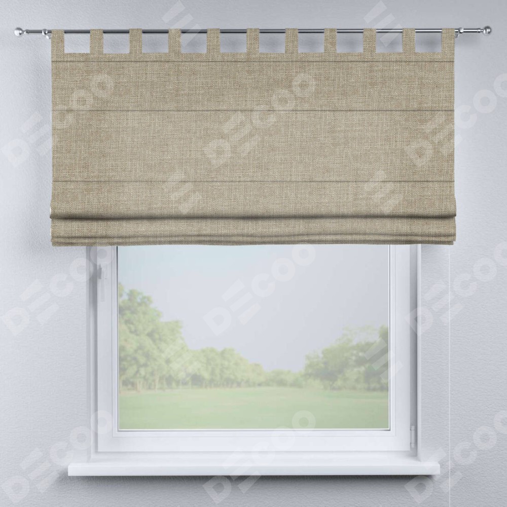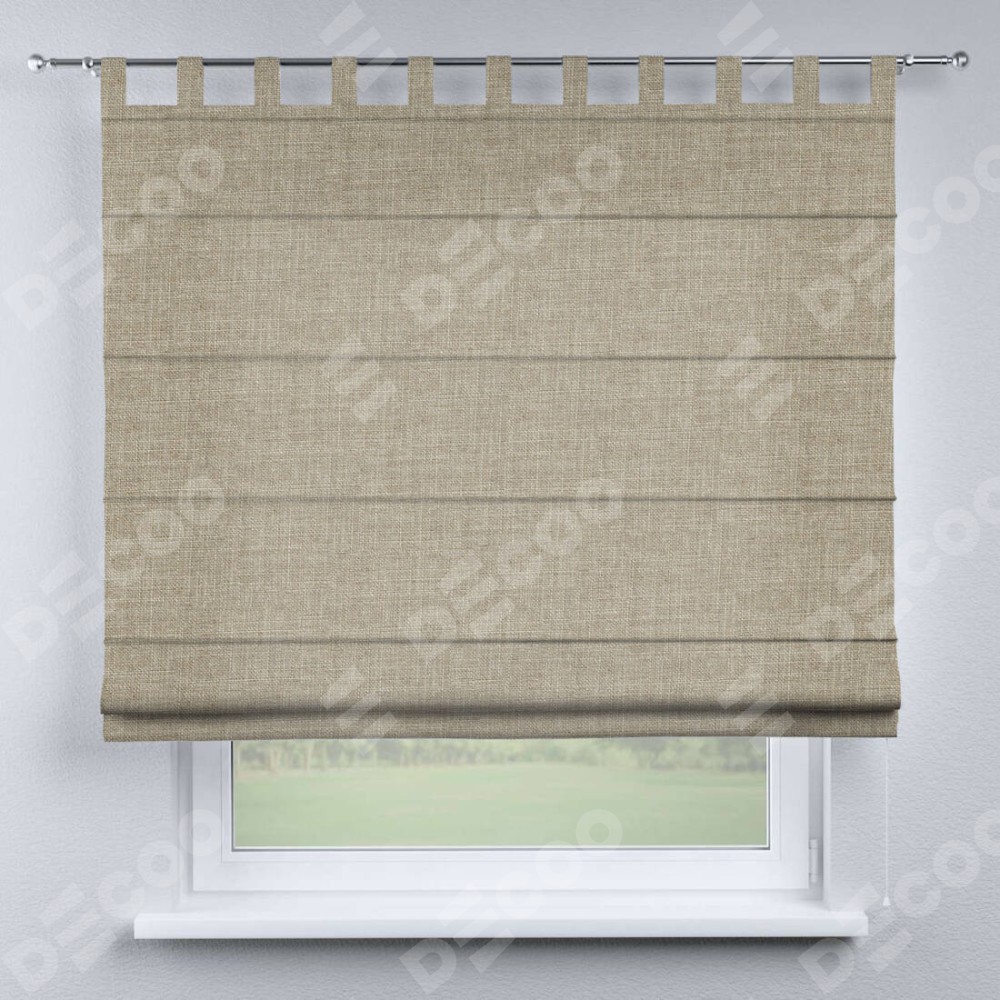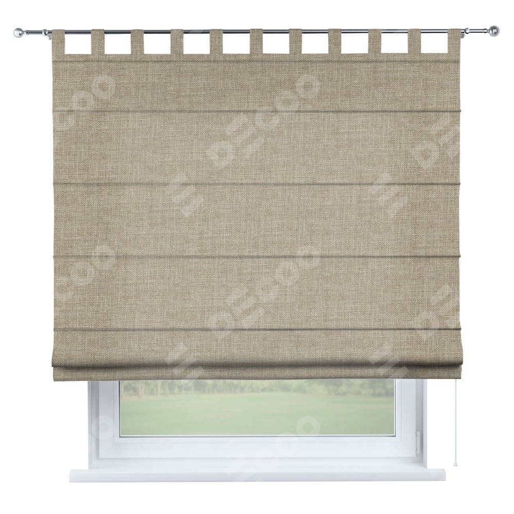 Римская штора производителя «Cortin», используется для проёма, пошита из ткани лён бежевый, артикул ткани 143839. Данная модель пошита на петлях, комплектуется на выбор круглым карнизом и подходит для монтажа на стену. Римская штора на петлях имеет простую систему регулировки высоты, отличительным преимуществом данной модели является простой способ монтажа. Достаточно повесить ее на трубу и штора готова!