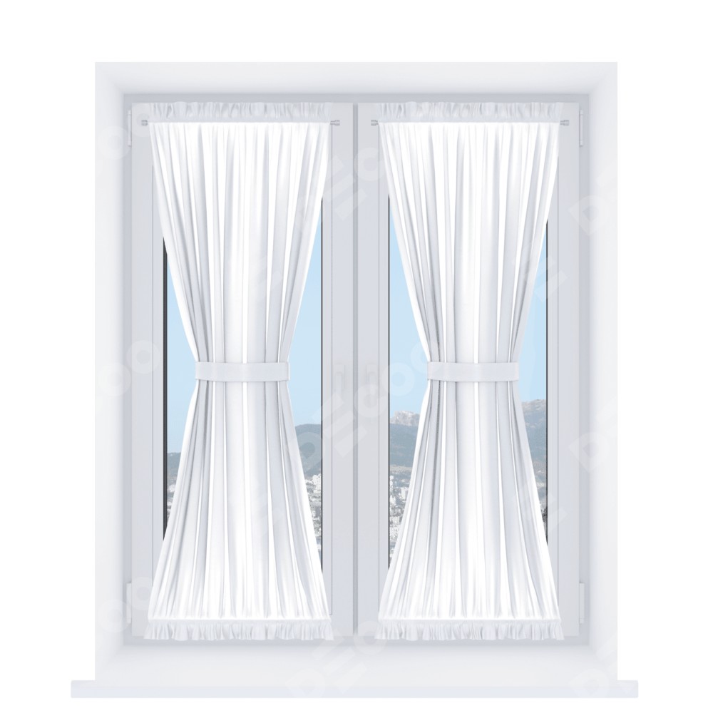 Штора «Песочные часы» производителя «Cortin», используется для створок окон и дверей, пошита из ткани вельвет дымчато-белый, артикул ткани 85535.