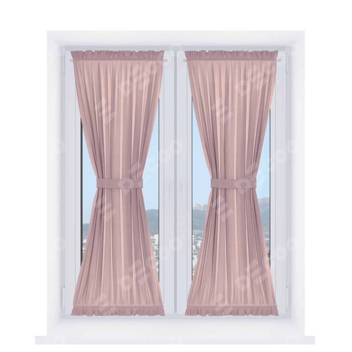 Штора «Песочные часы» производителя «Cortin», используется для створок окон и дверей, пошита из ткани вельвет розовая пудра, артикул ткани 14132.