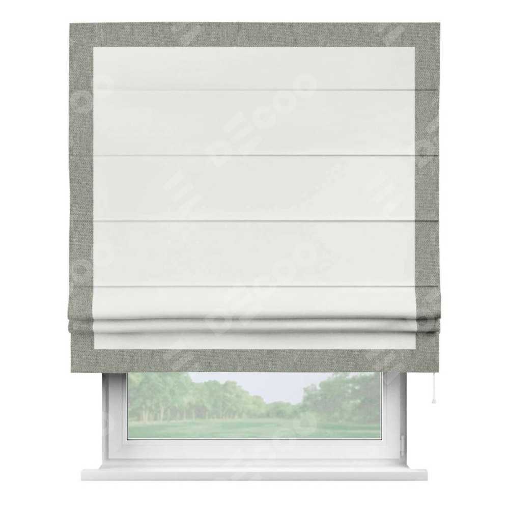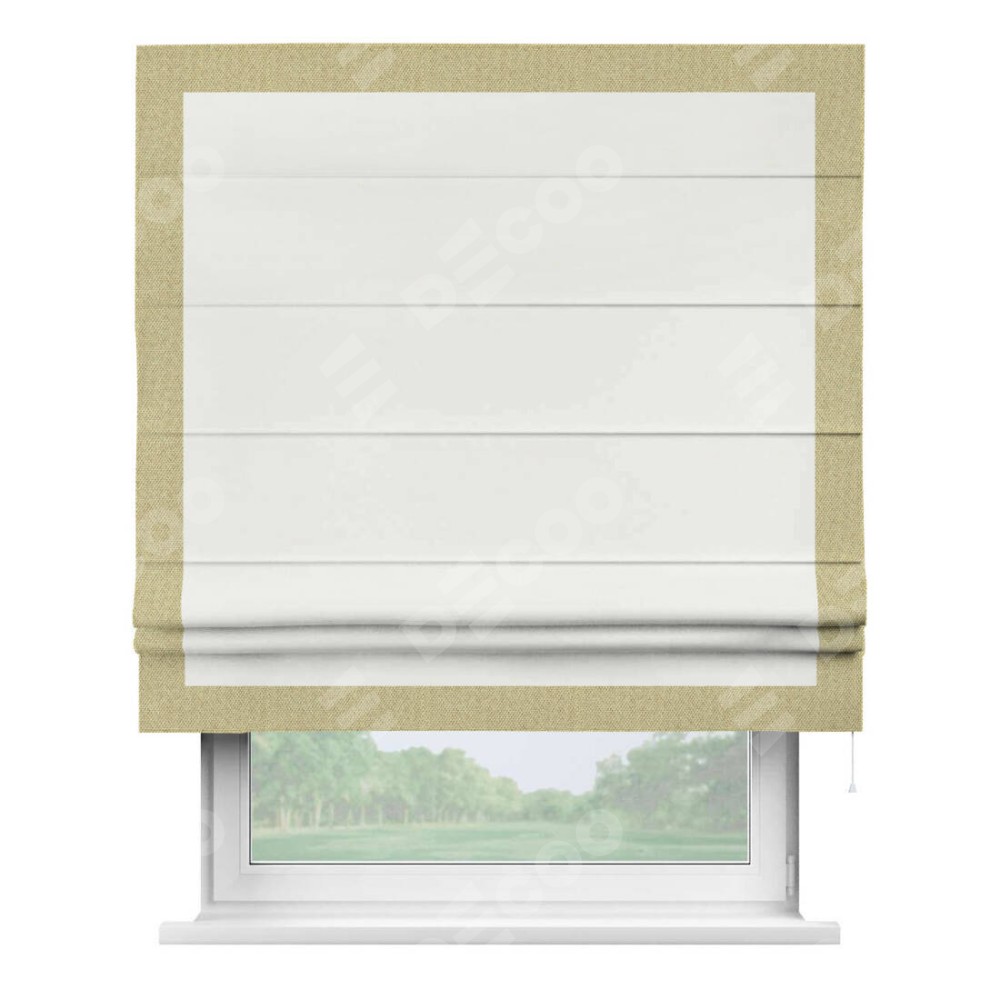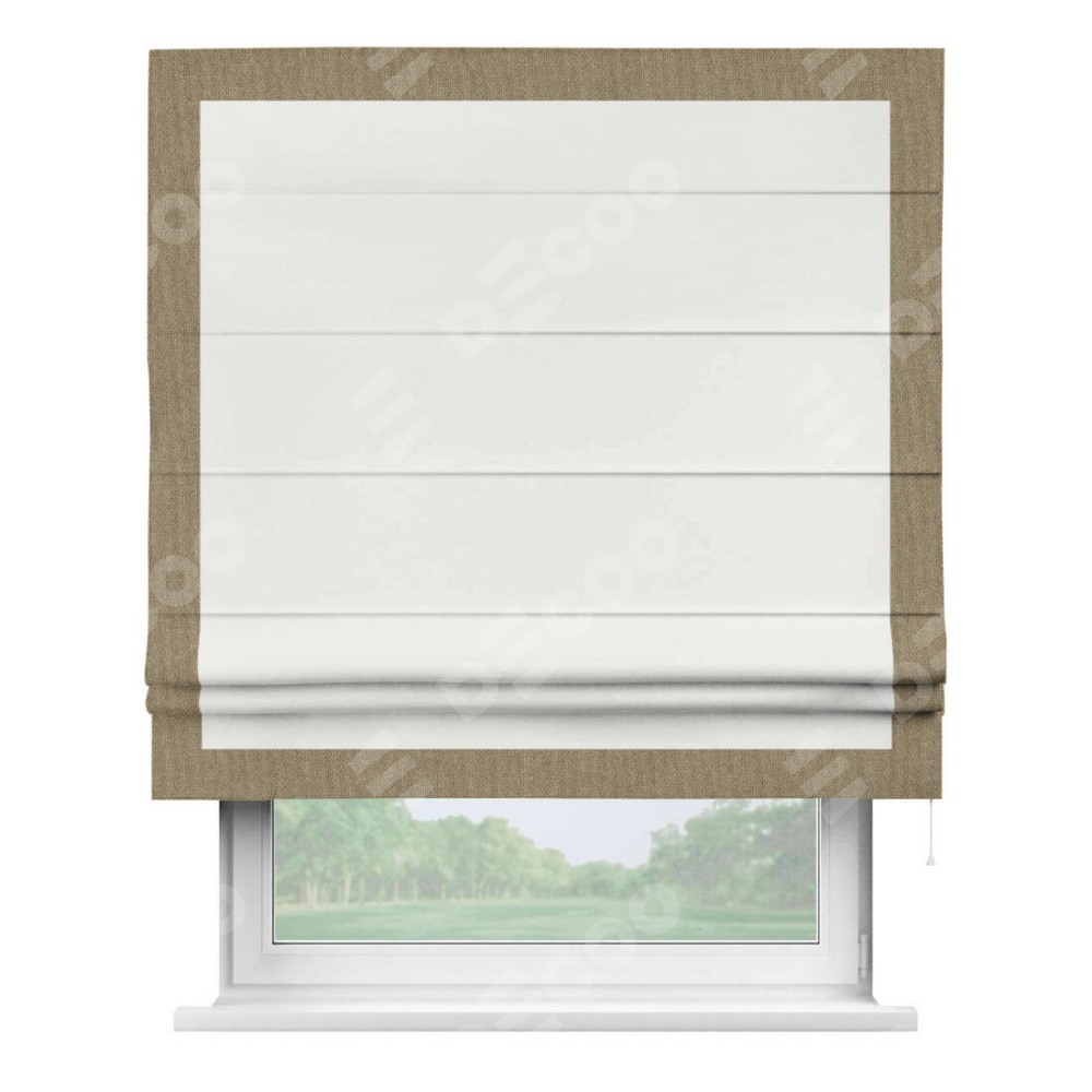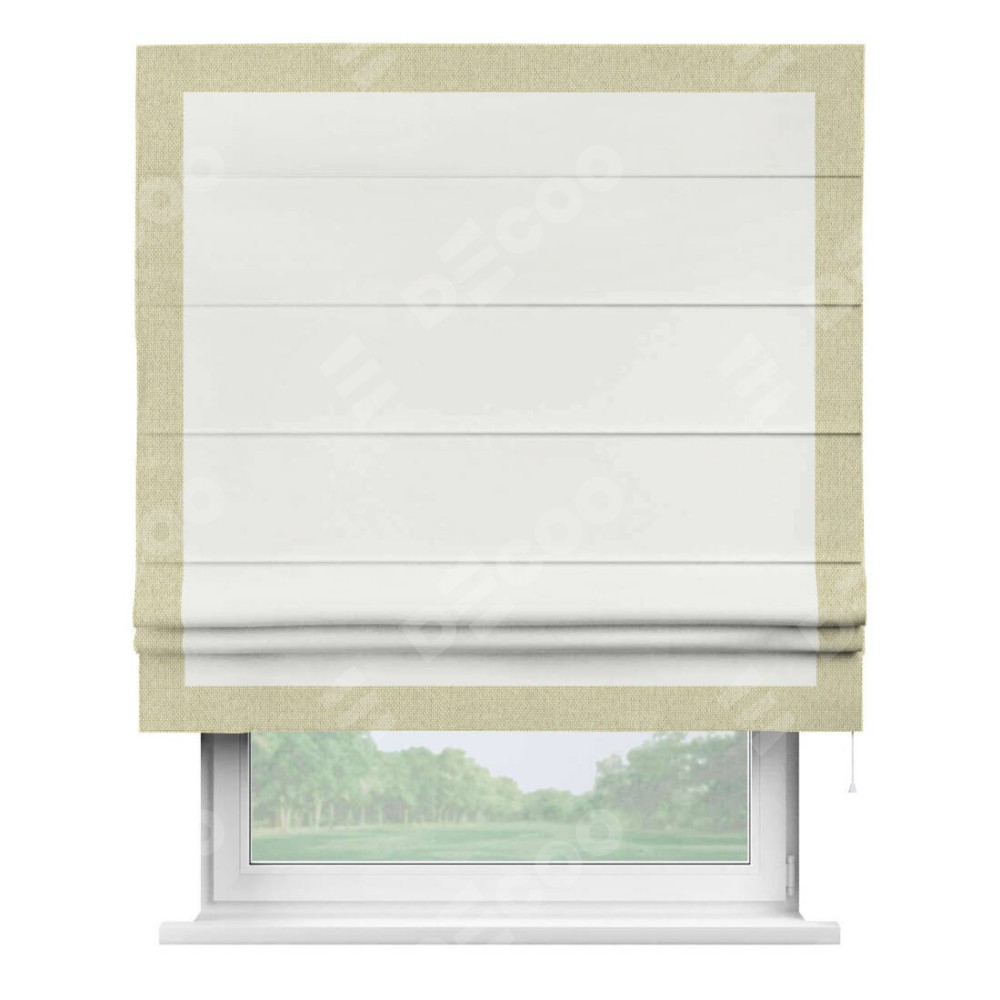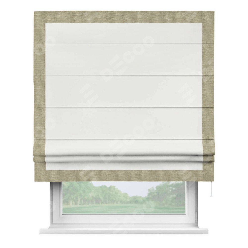 Римская штора «Кортин» для проема, лён димаут молочный с кантом Чесс