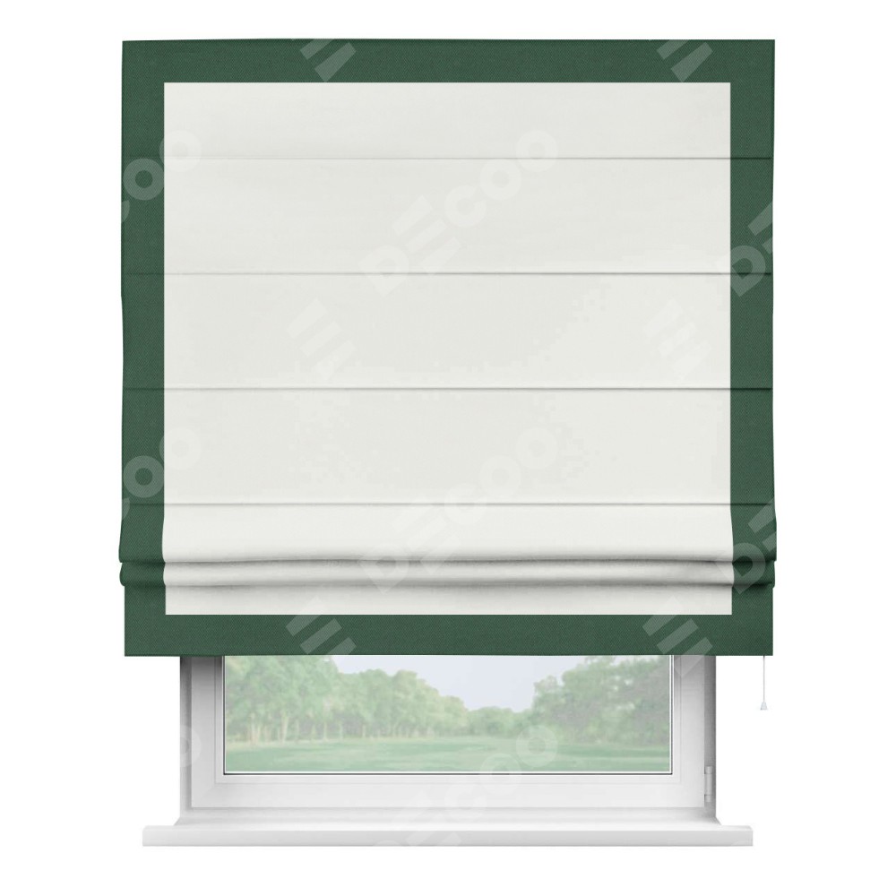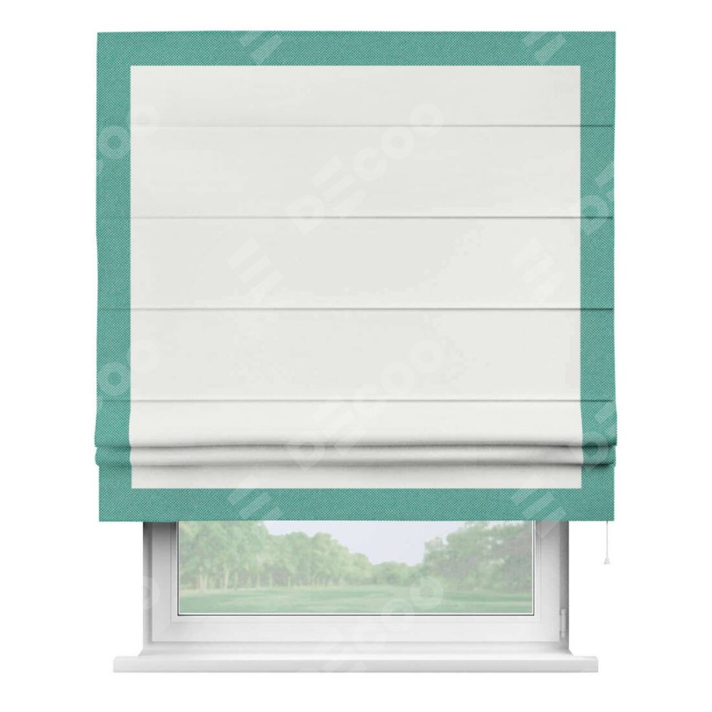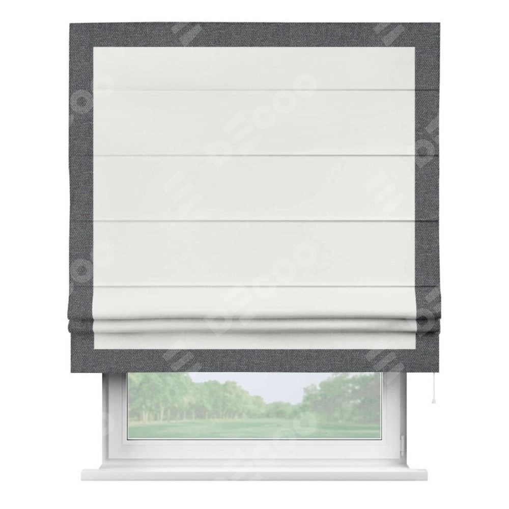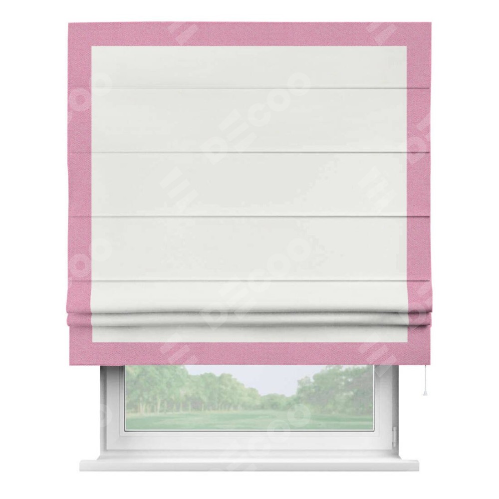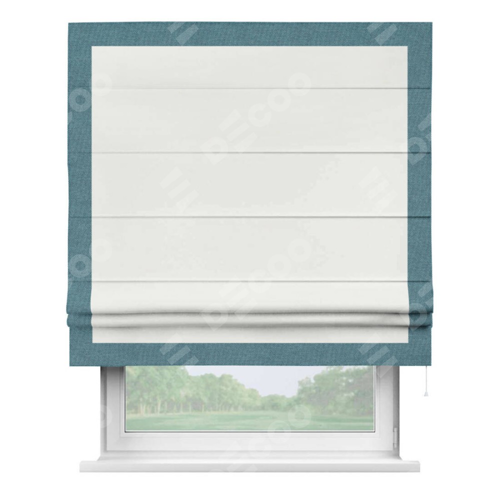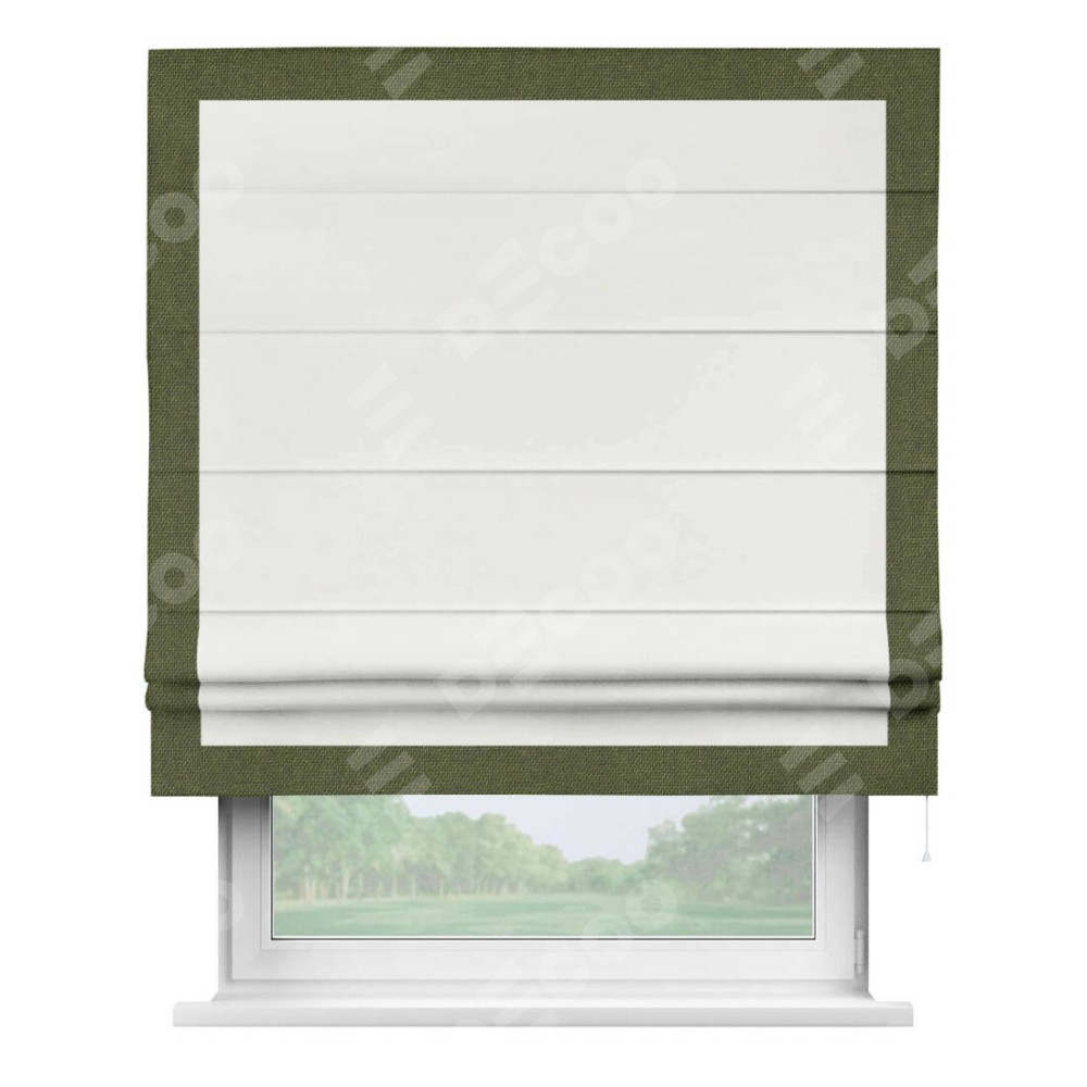 Римская штора «Кортин» для проема, лён димаут молочный с кантом Чесс