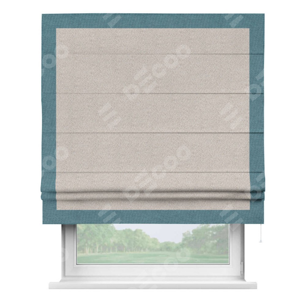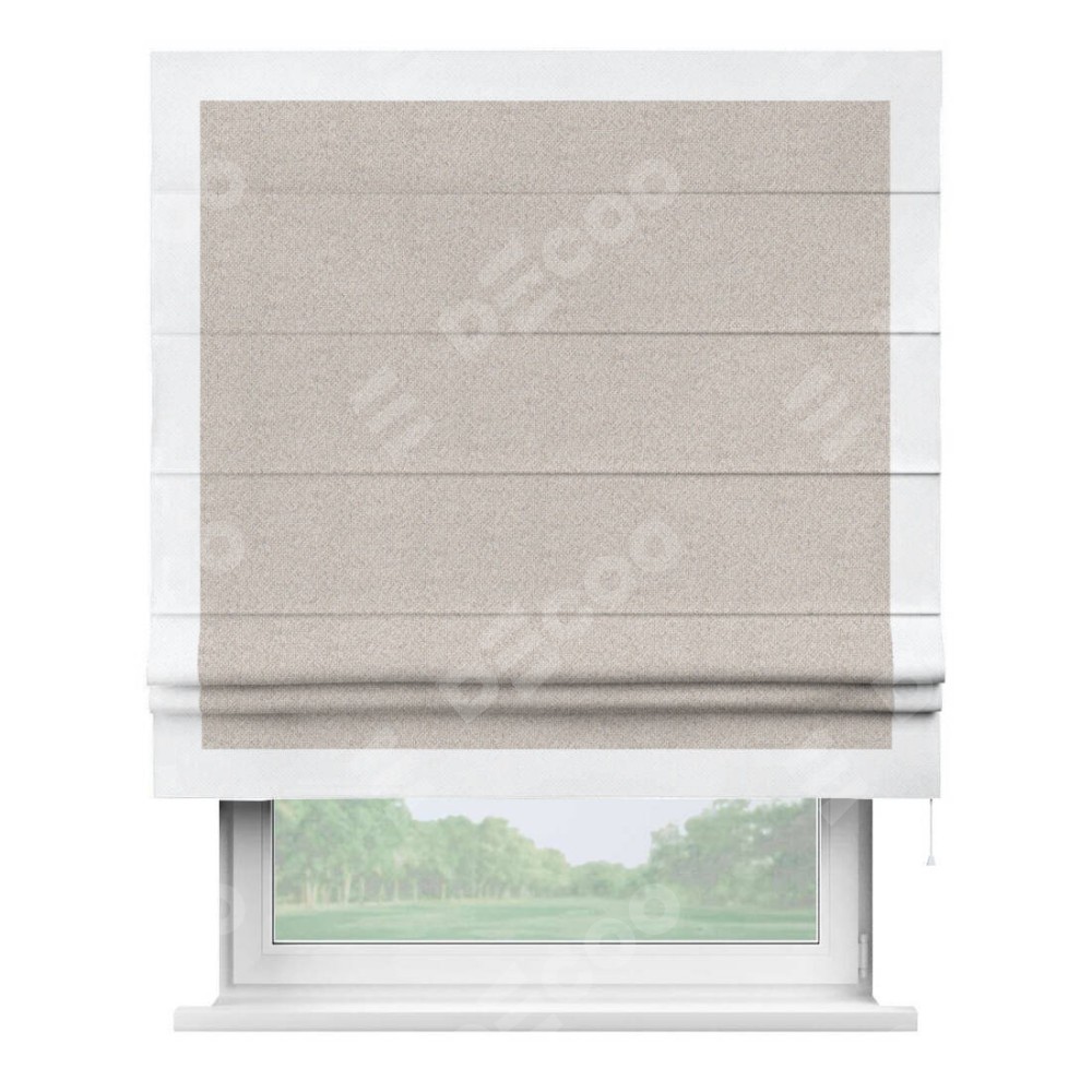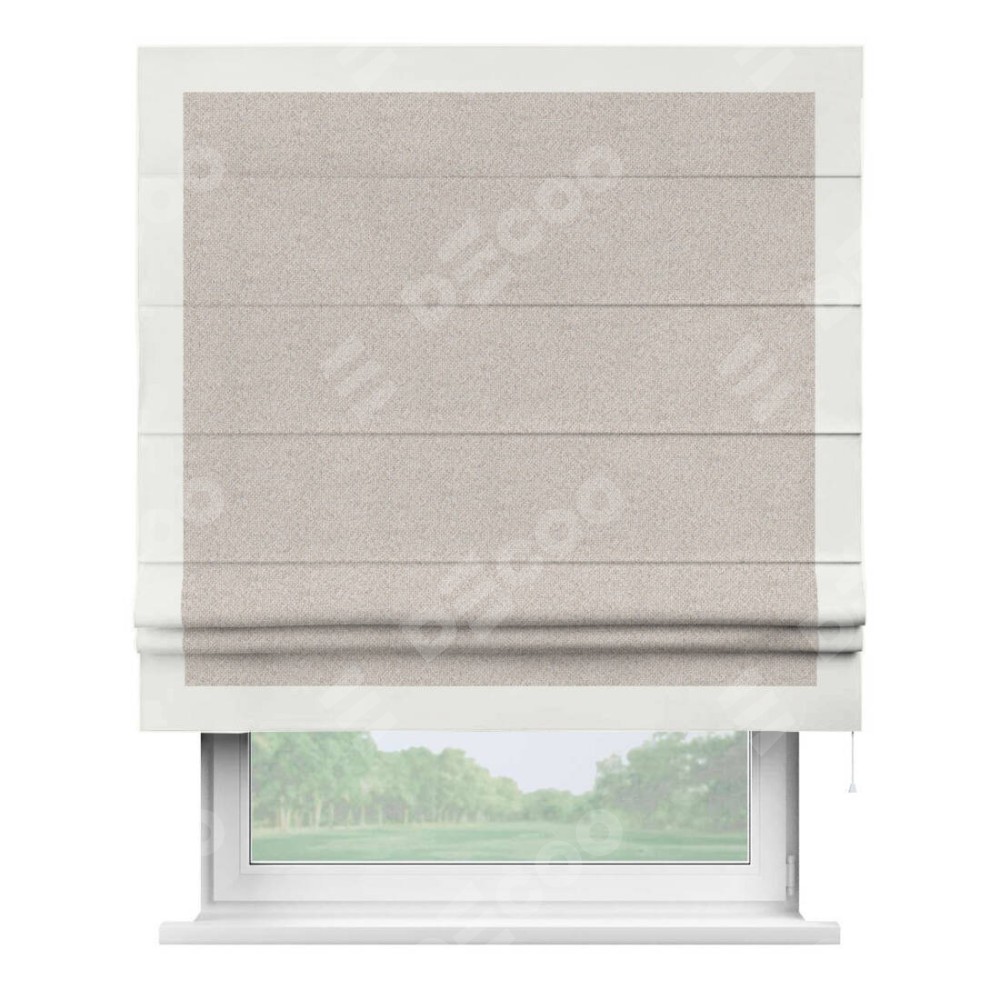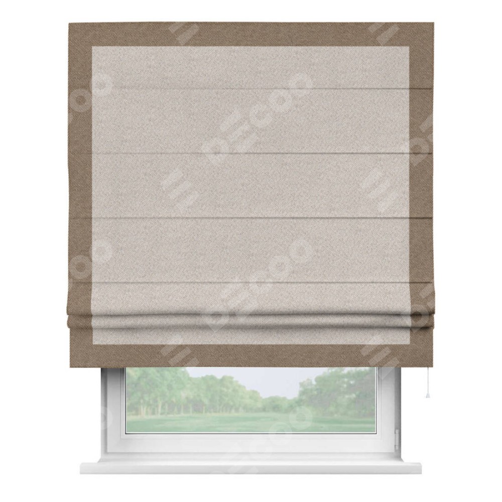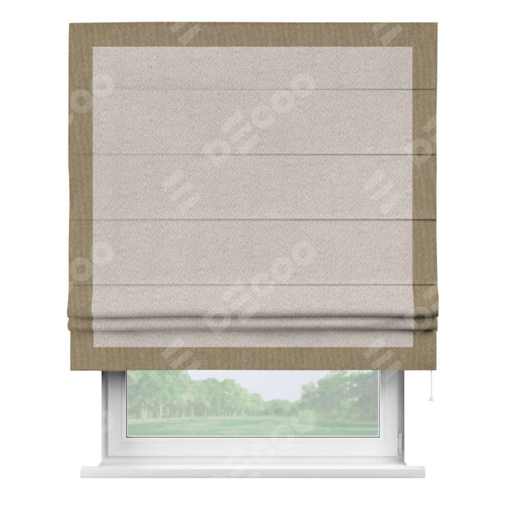 Римская штора «Кортин» для проема, лён димаут бежевый с кантом Чесс