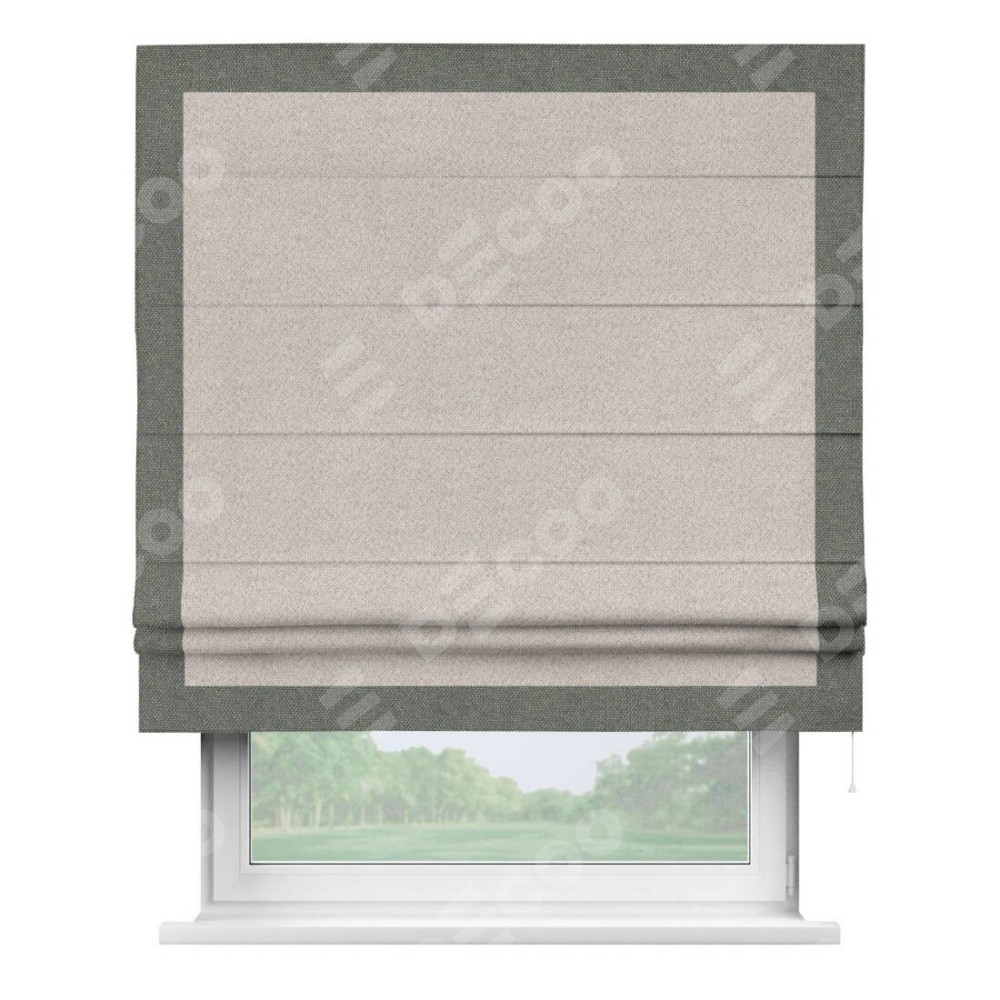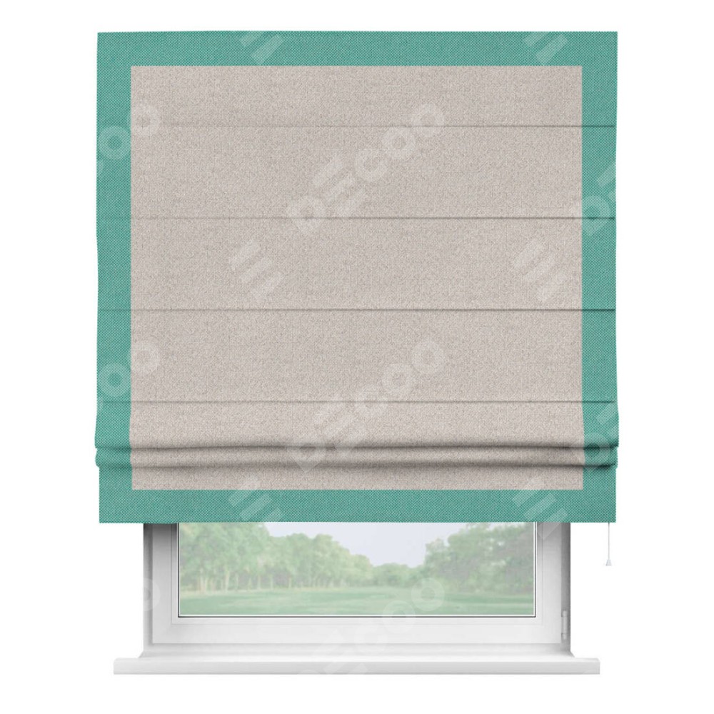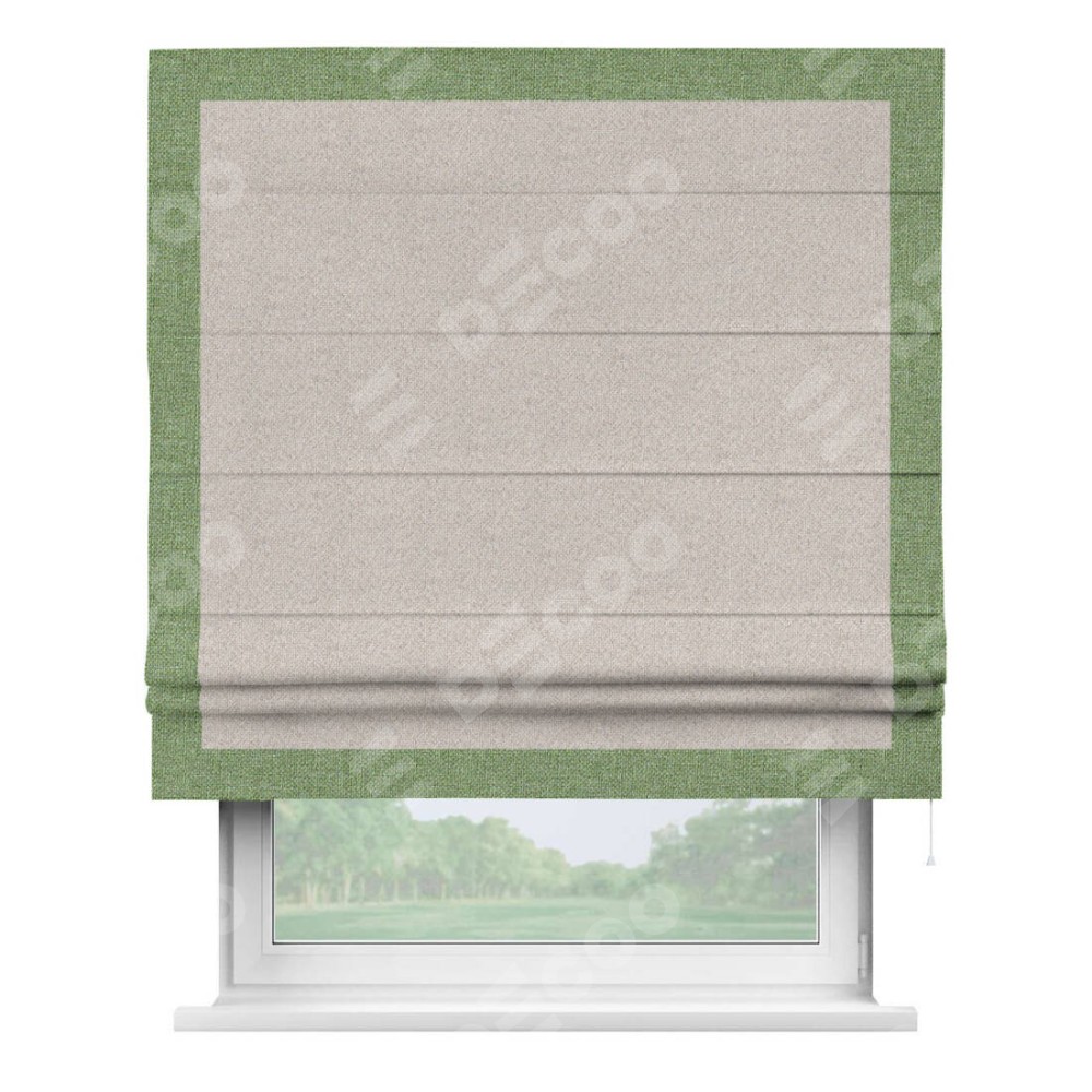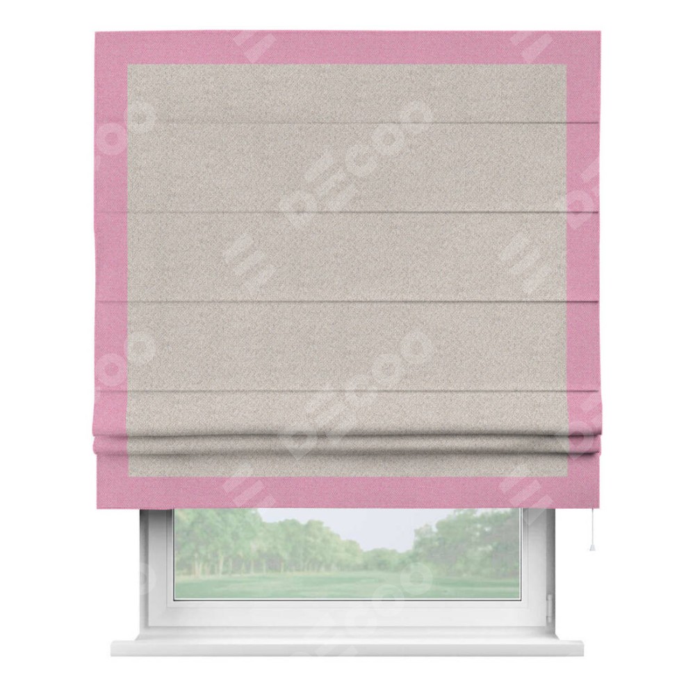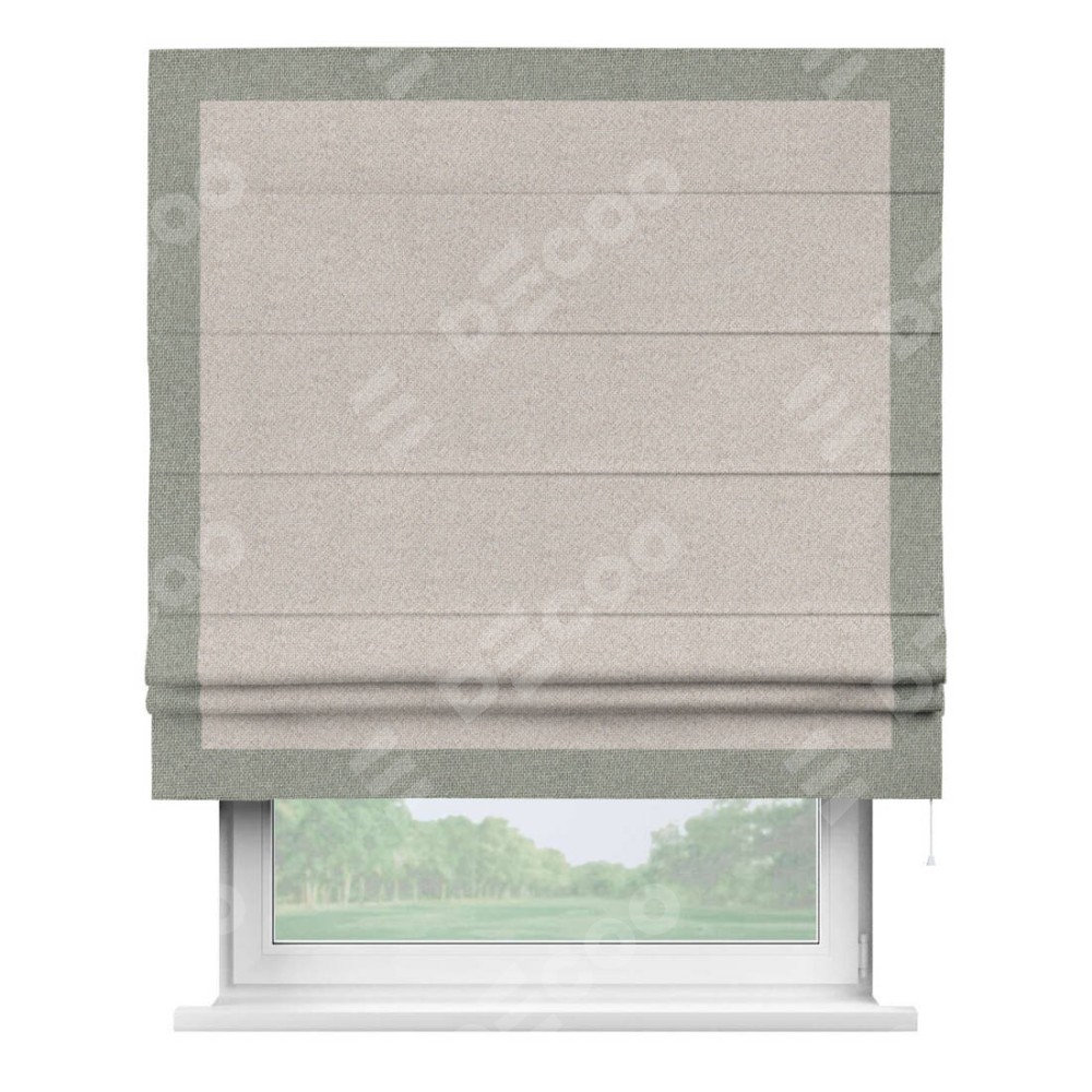 Римская штора «Кортин» для проема, лён димаут бежевый с кантом Чесс