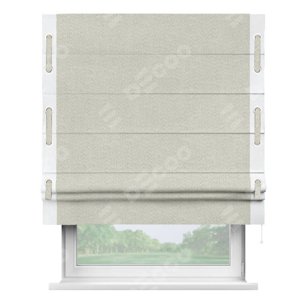 Римская штора «Cortin» для проёма, лён димаут светло-бежевый с кантом Стрим Дуо (люверсы с пояском)