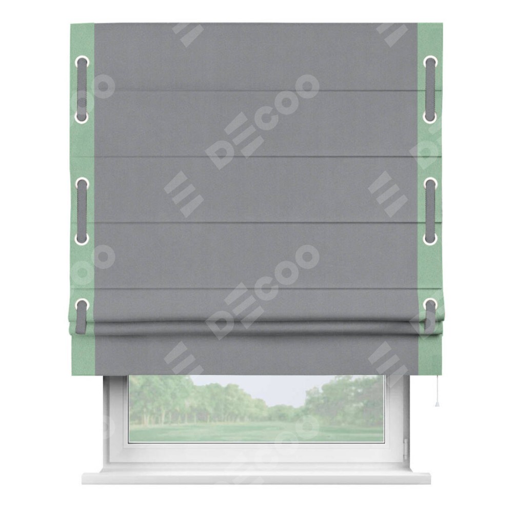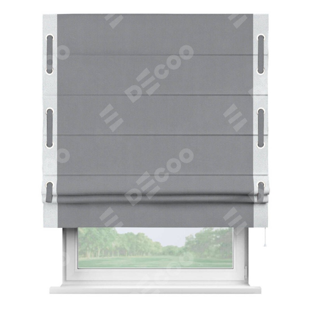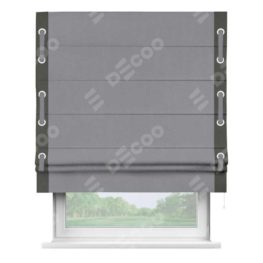 Римская штора «Кортин» для проема, блэкаут однотонный серый с кантом Стрим Дуо (люверсы с пояском)
