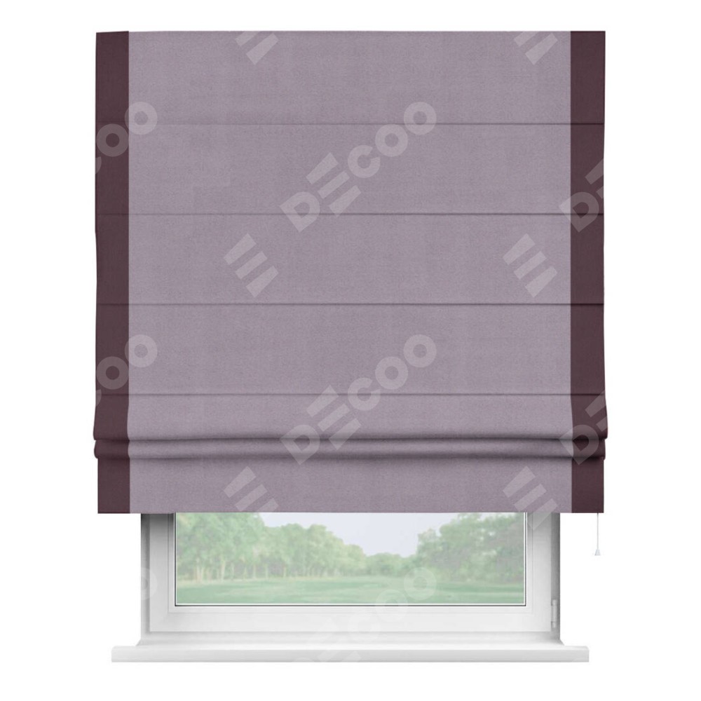 Римская штора «Кортин» для проёма, блэкаут однотонный лиловый с кантом Стрим Дуо