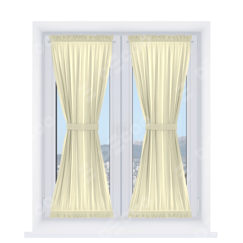 Штора «Песочные часы» производителя «Cortin», используется для створок окон и дверей, пошита из ткани блэкаут однотонный бежевый, артикул ткани 88283.