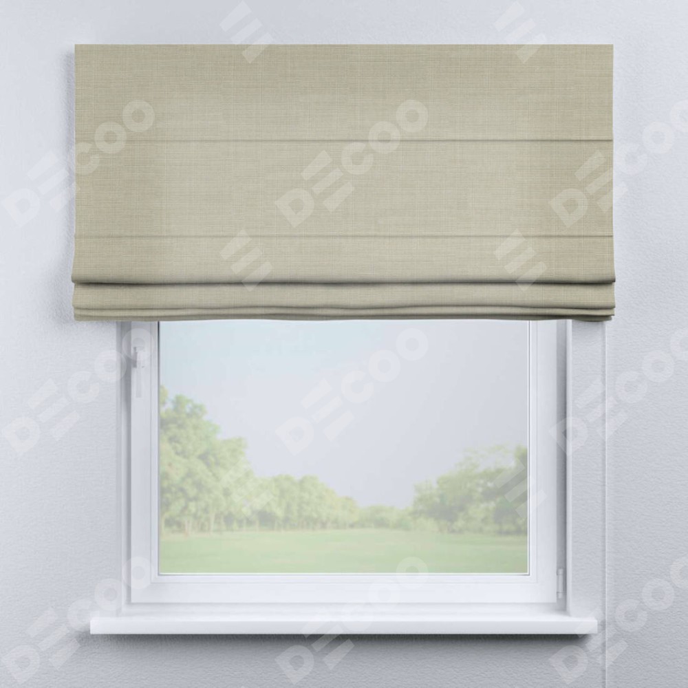 Классическая римская штора производителя «Cortin», пошита из ткани лён топлёное молоко, артикул: 104484. Имеет универсальный механизм и подходит для монтажа: на потолок, на стену и в нишу.