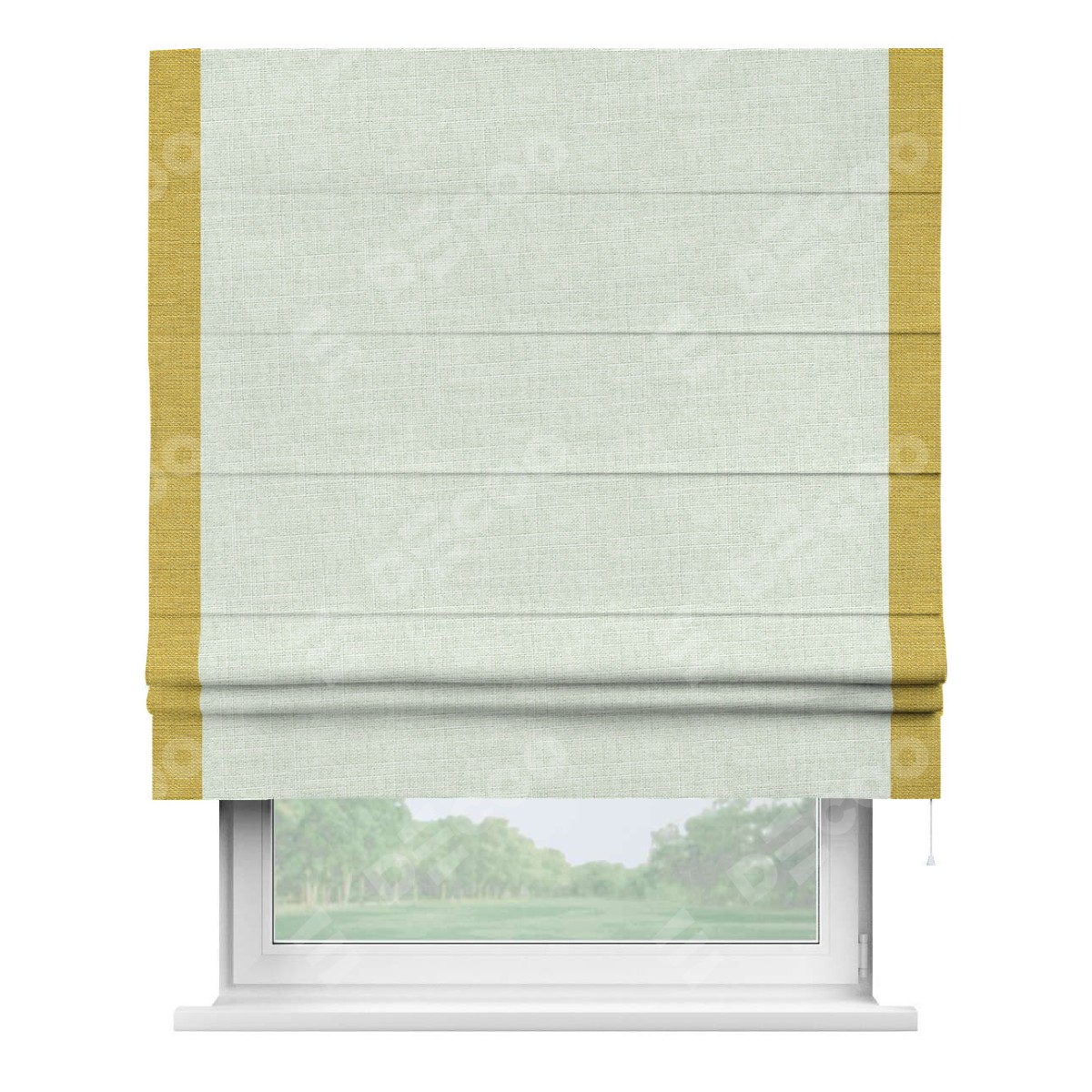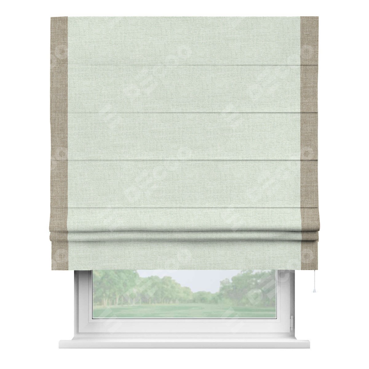 Римская штора «Кортин» для проёма, лён топлёное молоко, с кантом Стрим Дуо