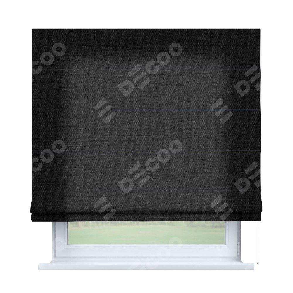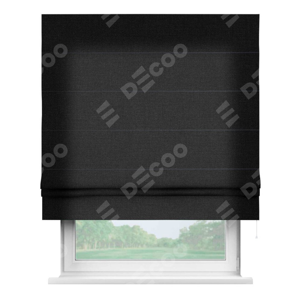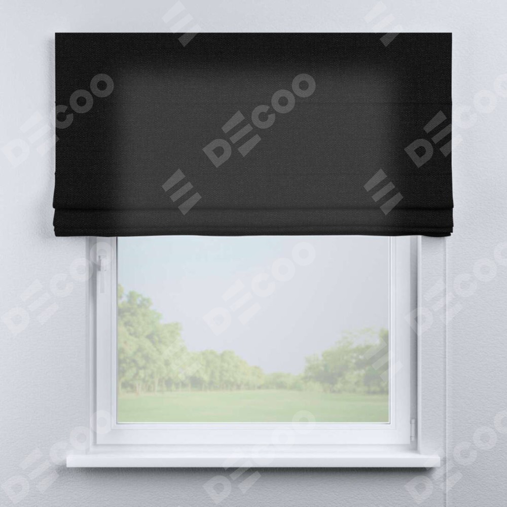 Классическая римская штора производителя «Cortin», пошита из ткани лён черный, артикул: 140815. Имеет универсальный механизм и подходит для монтажа: на потолок, на стену и в нишу.