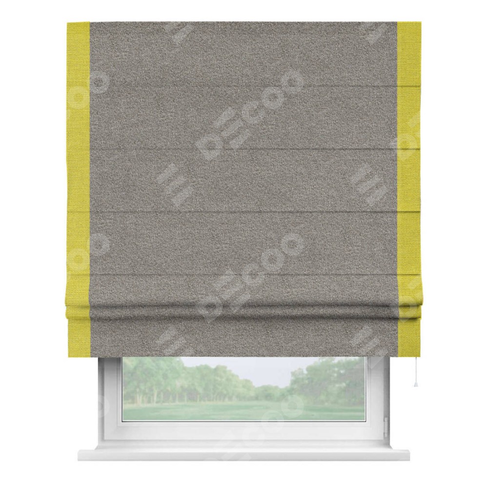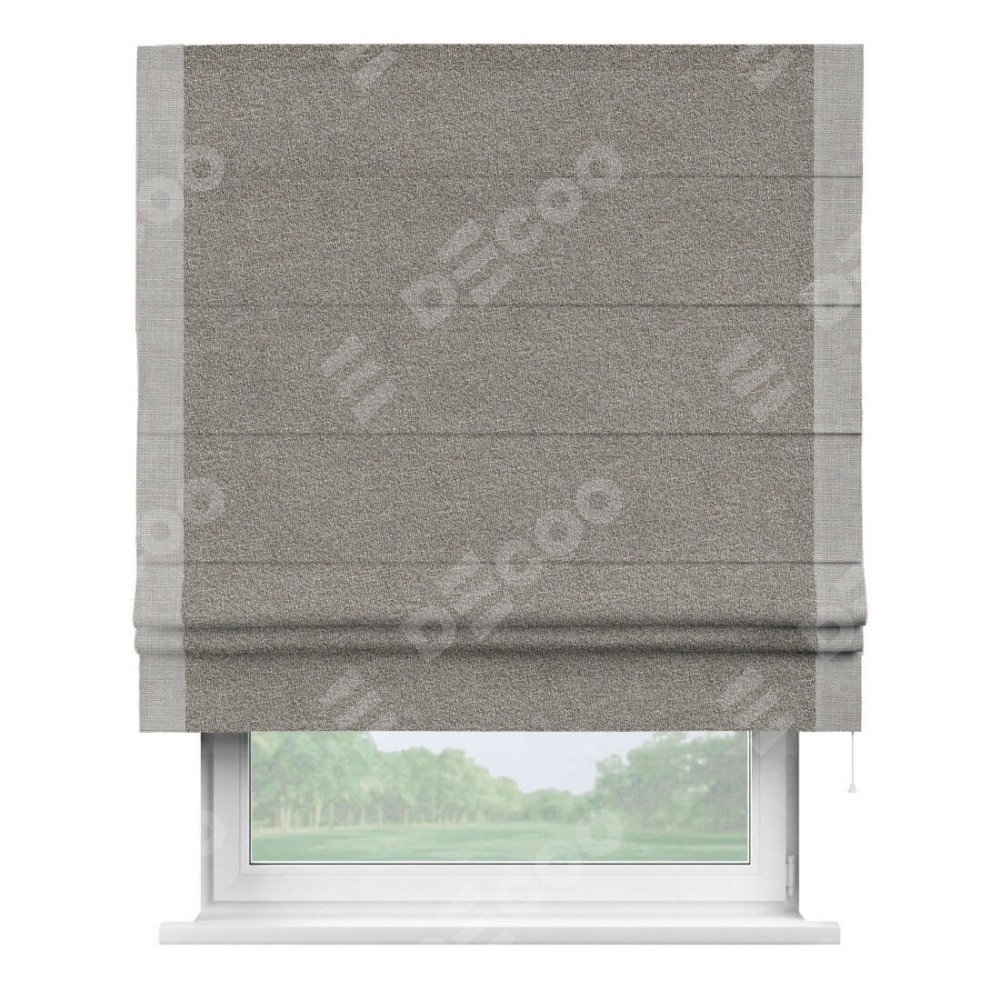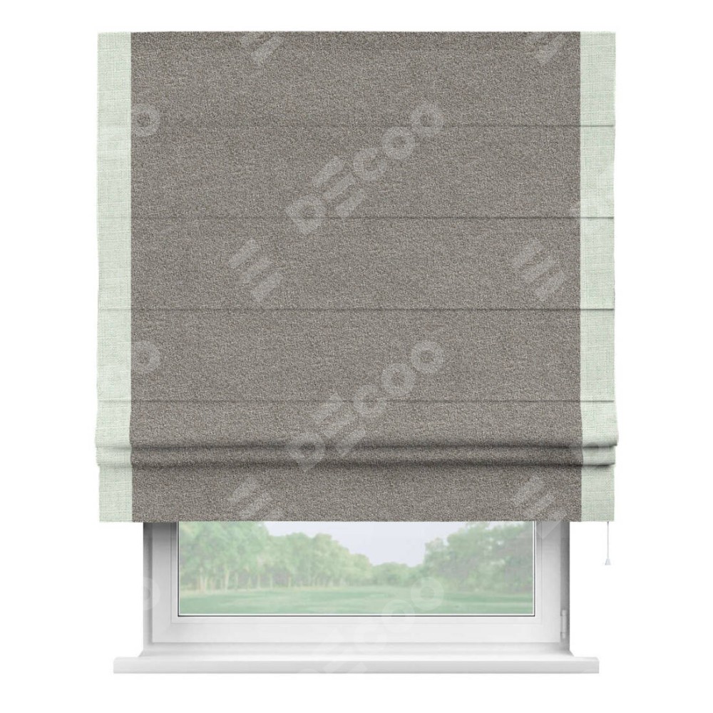 Римская штора «Кортин» для проёма, лён меланж натуральный, с кантом Стрим Дуо