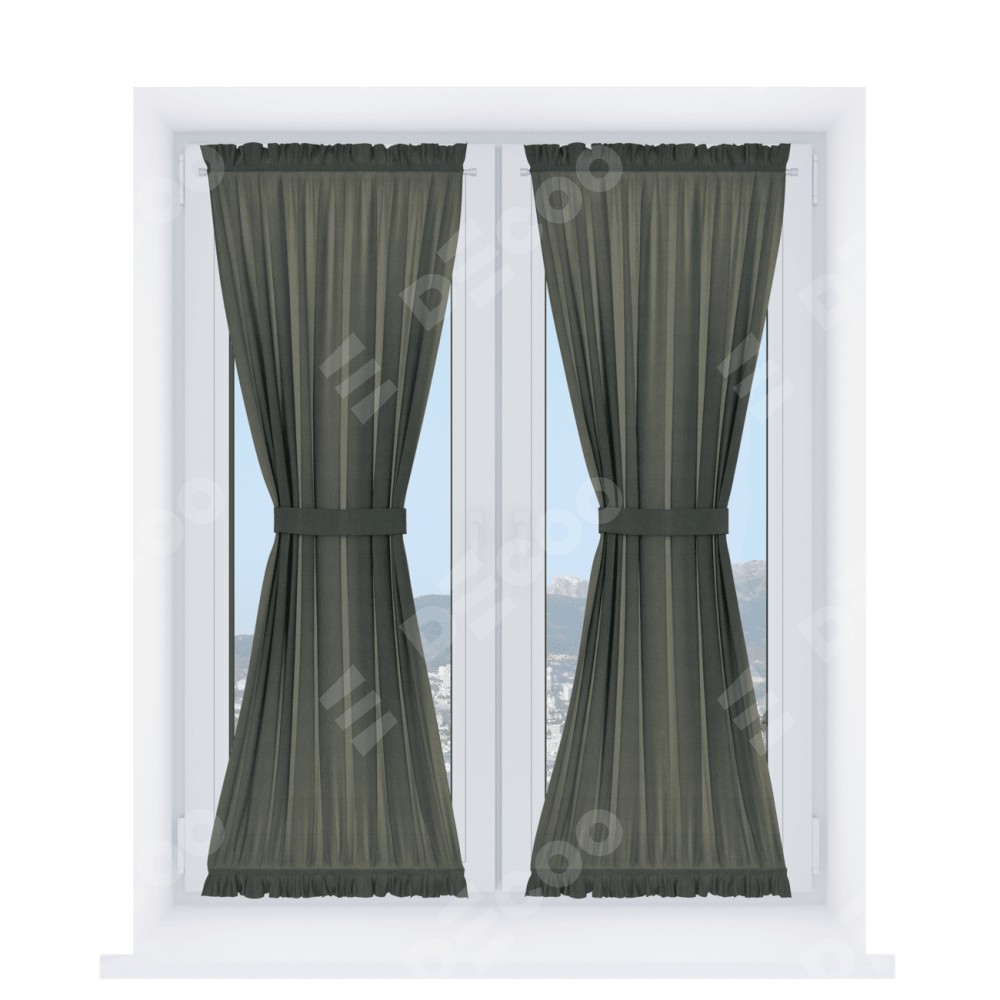 Штора «Песочные часы» производителя «Cortin», используется для створок окон и дверей, пошита из ткани лён димаут графит, артикул ткани 27.