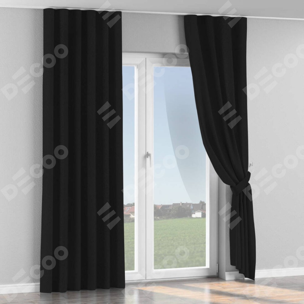 Комплект прямых штор, от производителя «Cortin», пошиты из ткани лён рустик черный, артикул ткани 145313. С изнаночной стороны в верхней части штор пристрачивается шторная лента с декоративными складками «Волна». Для создания элегантных складок рекомендуемый коэффициент 1:2 (на 100 см. ширины проёма 200 см. ширины ткани). Важно! Ширина штор указана без учёта коэффициента сборки!