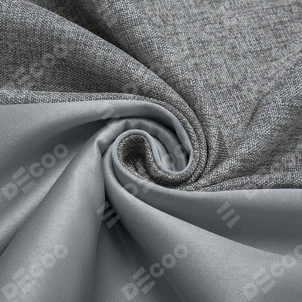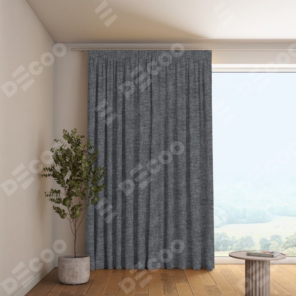 Готовые шторы от производителя «Cortin» представлены комплектом из двух одинаковых по размеру полотен, пошитых из ткани рогожка димаут тёмно-серый, артикул ткани 91029. Такие шторы по сравнению с индивидуальным пошивом имеют ряд преимуществ: удобный размерный ряд под стандартные проёмы, стоимость и сроки (т.к. изделия всегда в наличии).