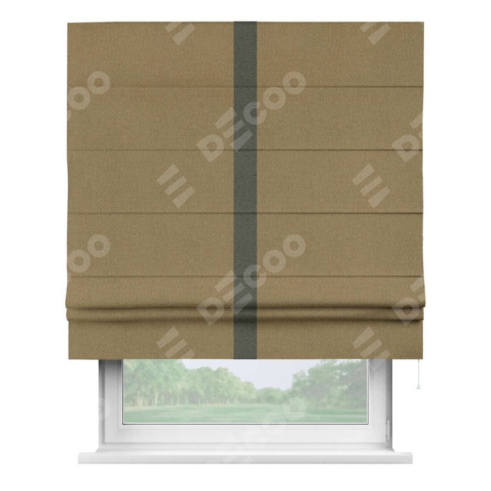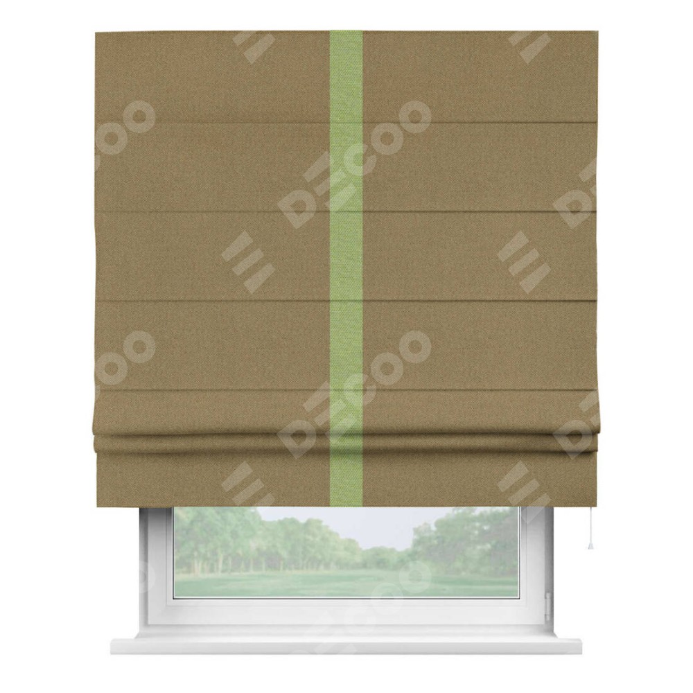 Римская штора «Кортин» с кантом Хайвэй, для проема, ткань лён димаут, оливковый