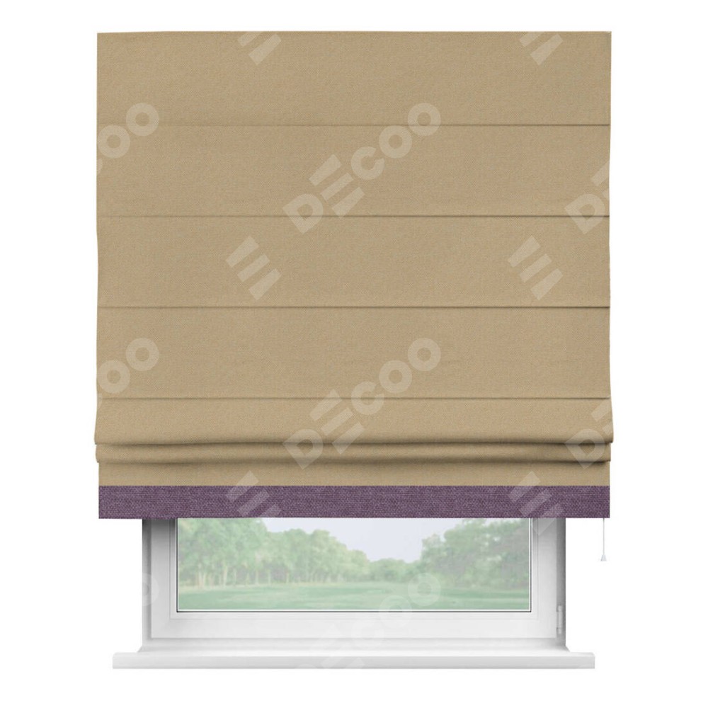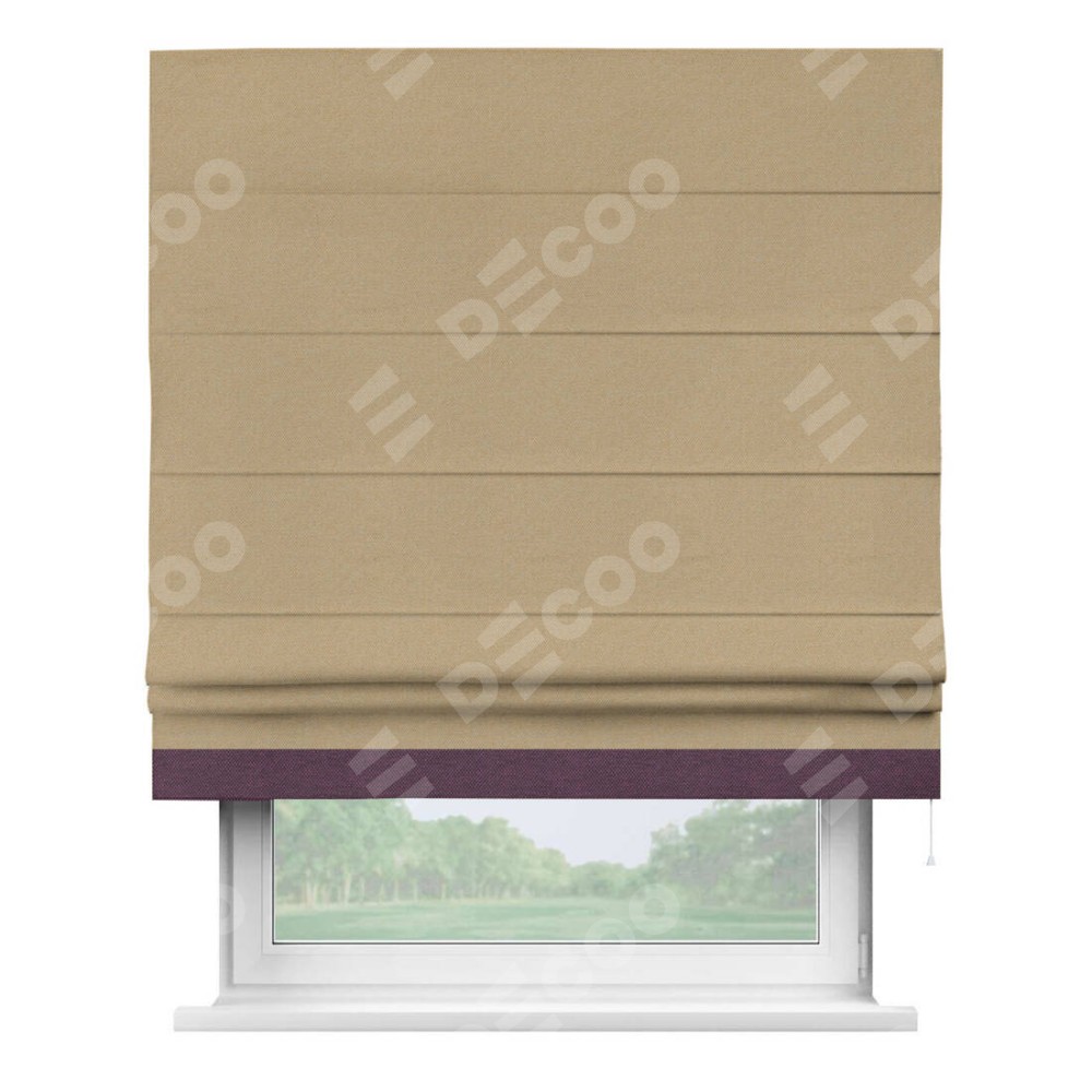 Римская штора «Кортин» с кантом Джестер, для проема, ткань лён димаут, тёмно-бежевый