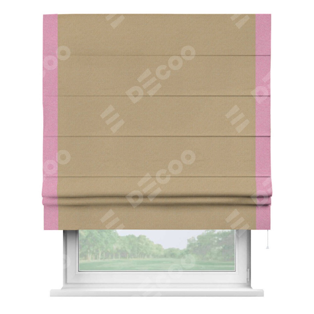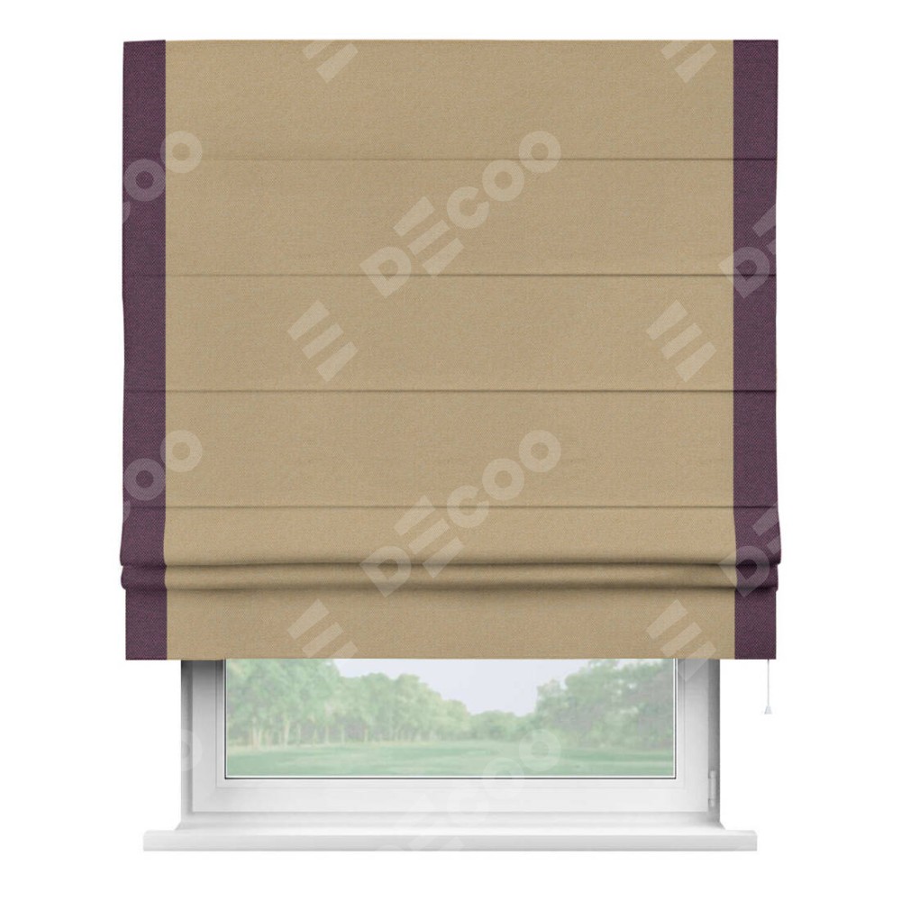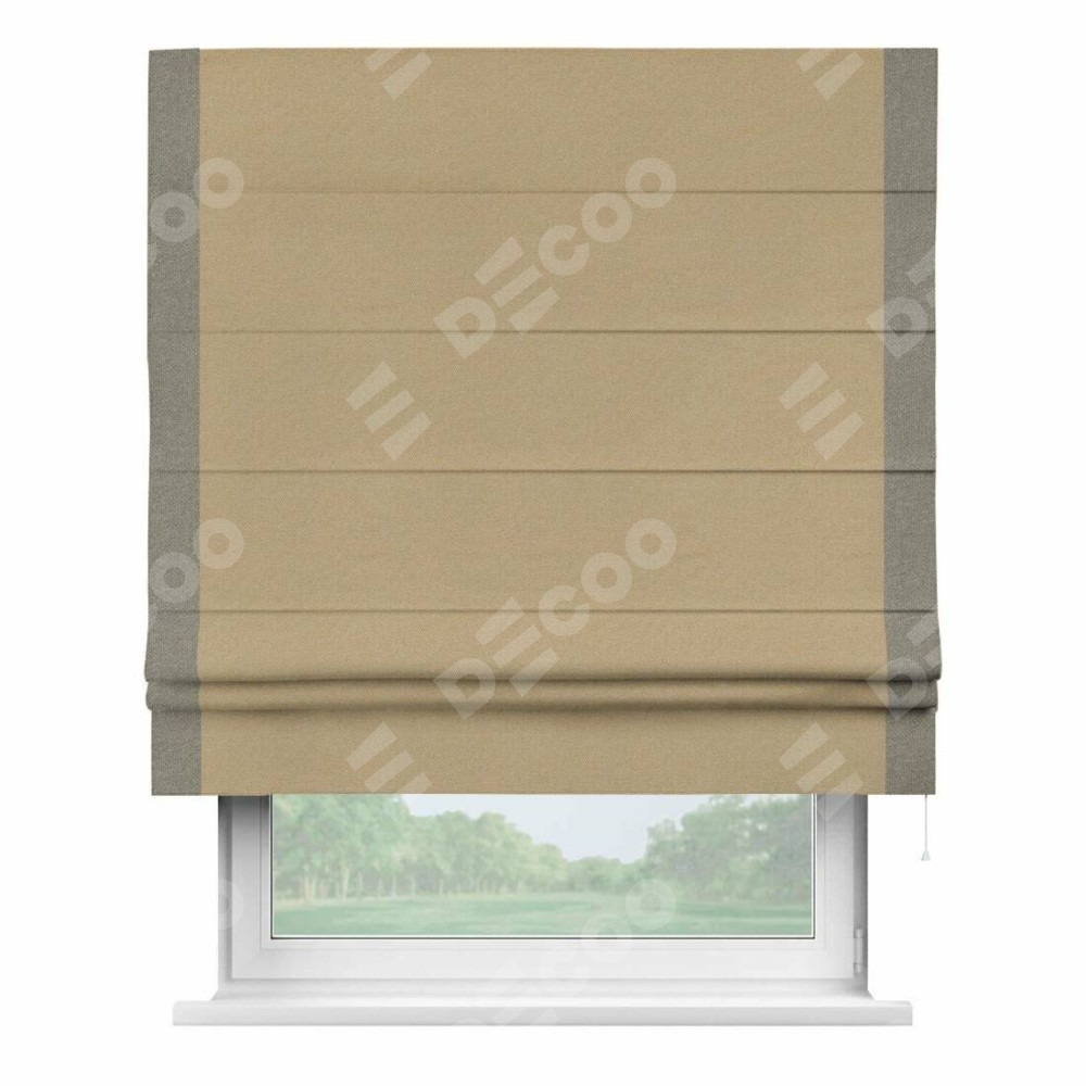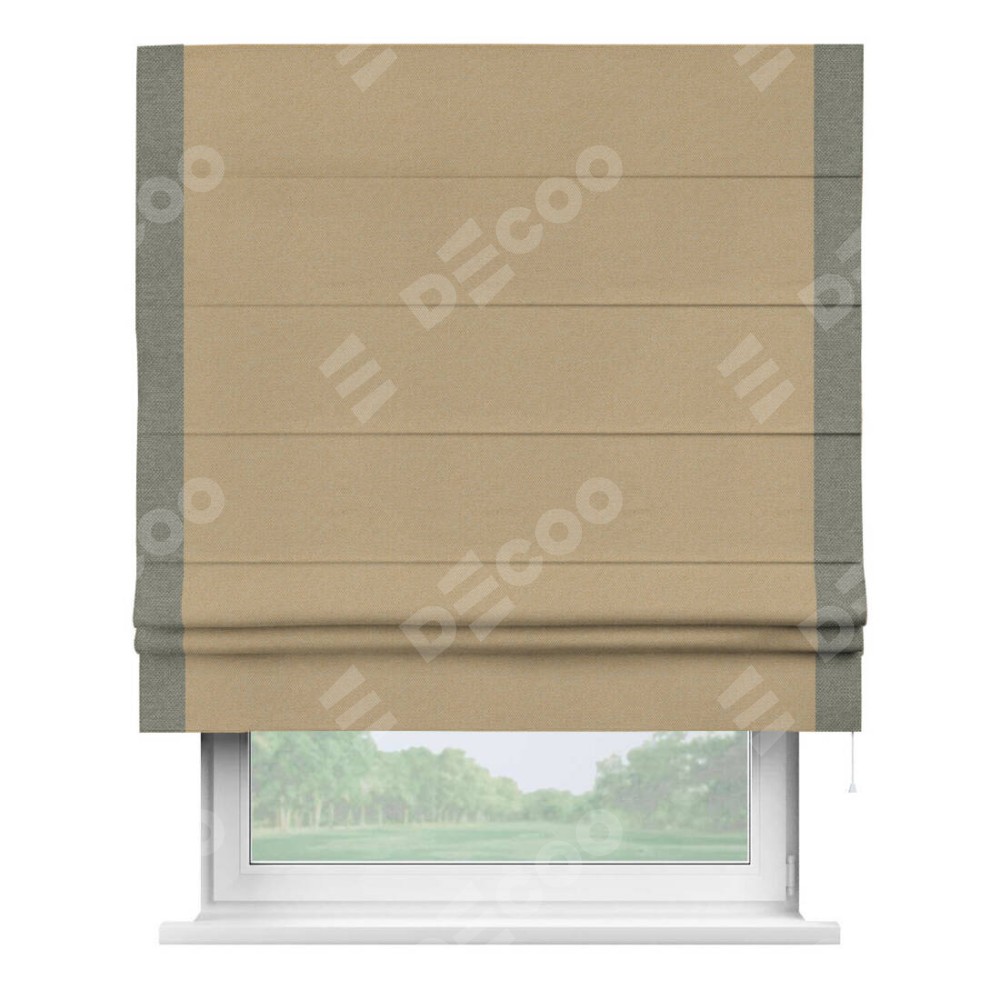 Римская штора «Кортин» с кантом Стрим Дуо, для проема, ткань лён димаут, тёмно-бежевый