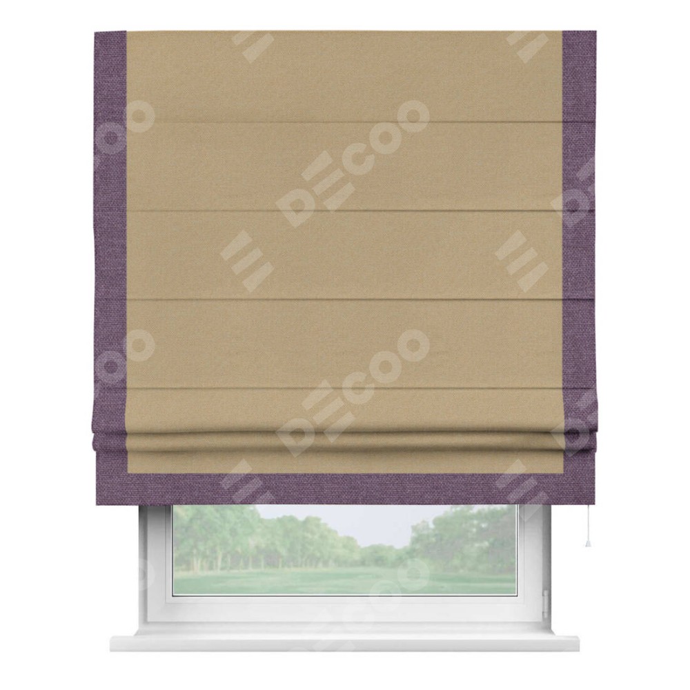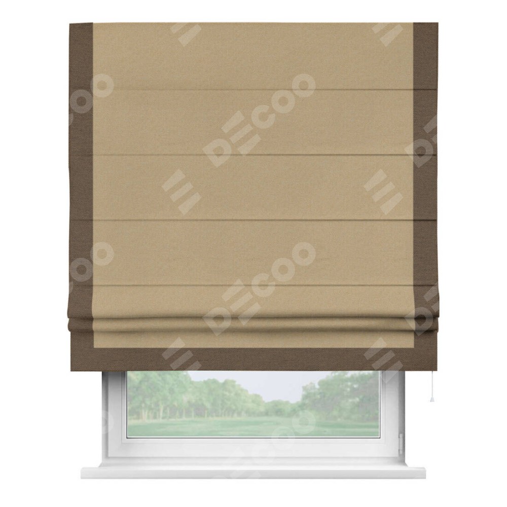 Римская штора «Кортин» с кантом Виктория, для проема, ткань лён димаут, тёмно-бежевый