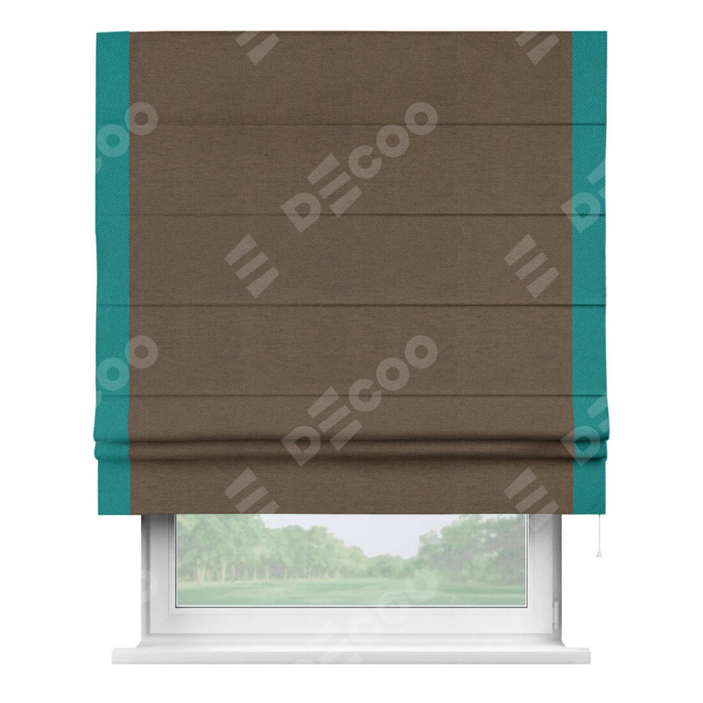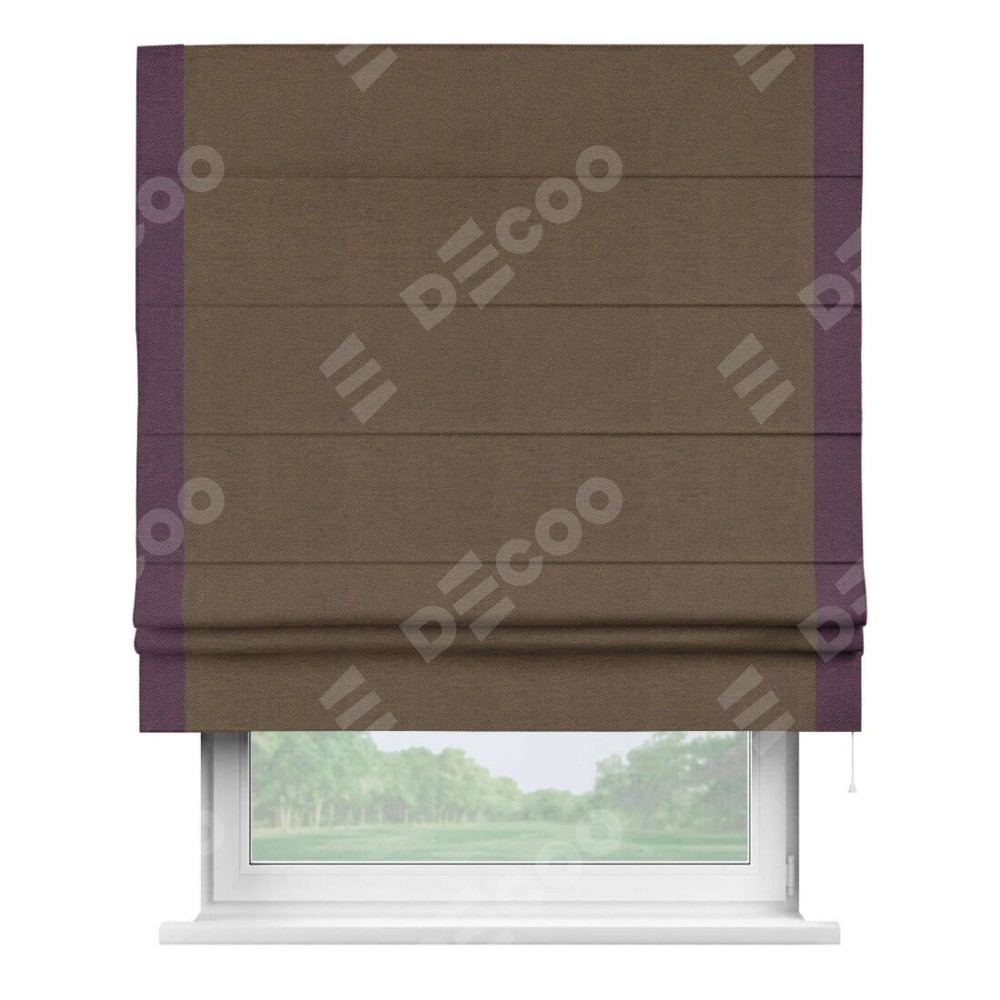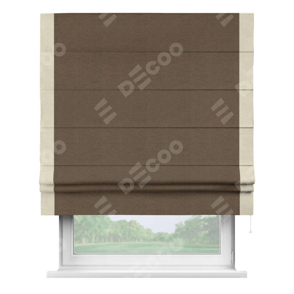 Римская штора «Кортин» с кантом Стрим Дуо, для проема, ткань лён димаут, тёмно-коричневый