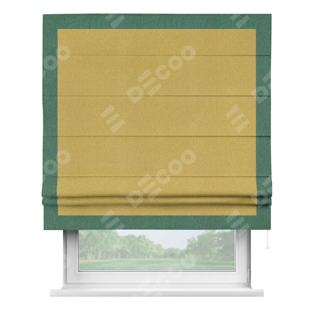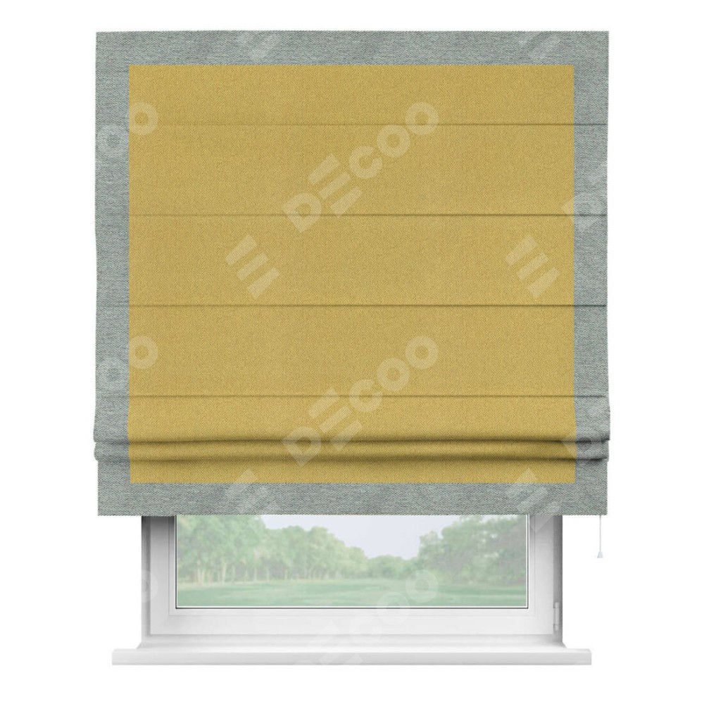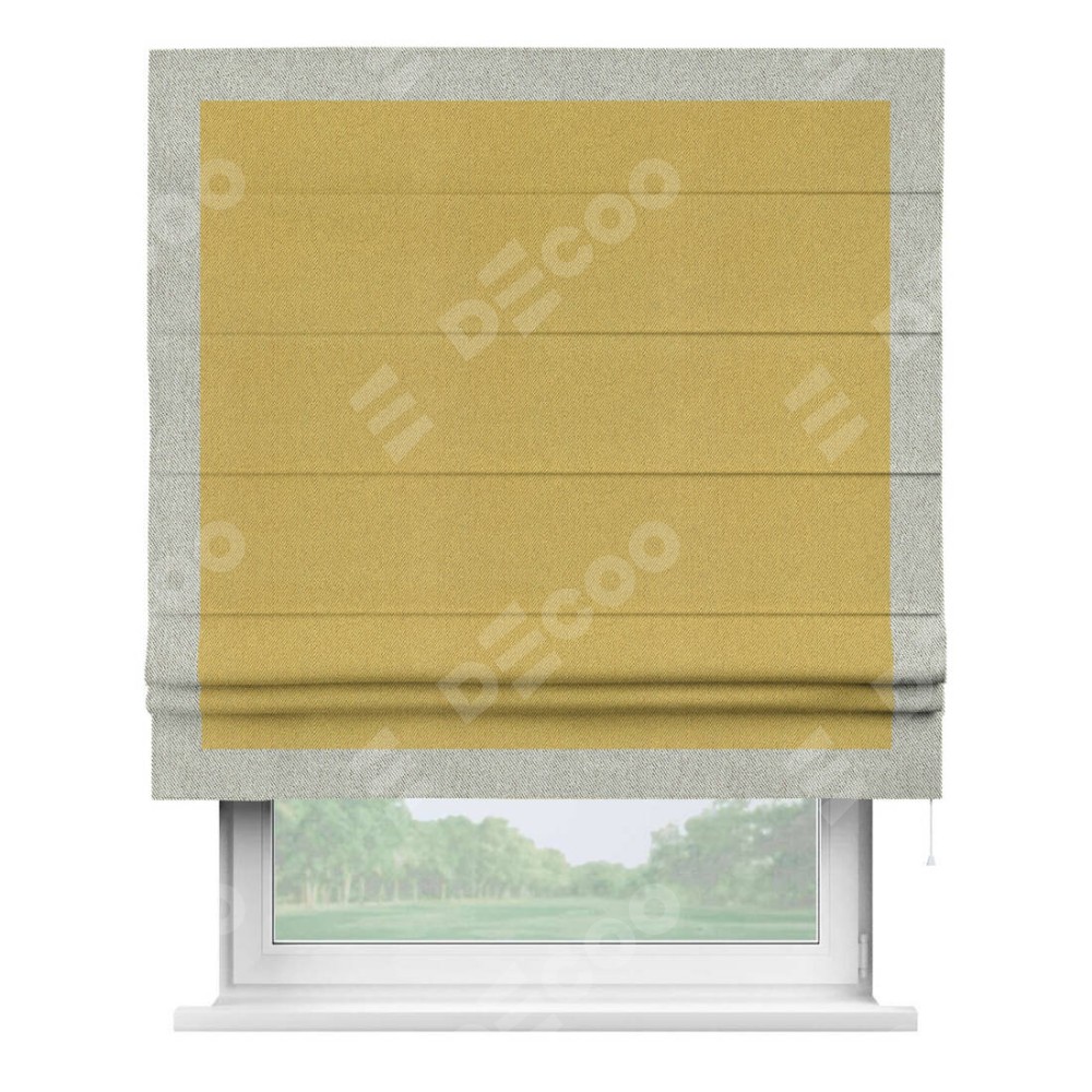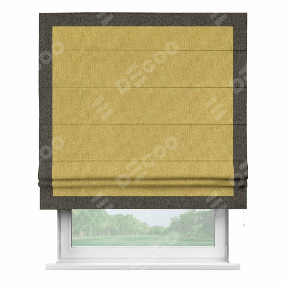 Римская штора «Кортин» с кантом Чесс, для проема, ткань твид блэкаут, пыльная горчица