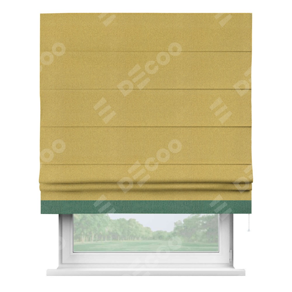 Римская штора производителя «Cortin», используется для проёма, пошита из ткани твид блэкаут пыльная горчица, артикул 21588. Отделка шторы кантом «Джестер», ткань для канта используется из твида разной расцветки на выбор. Имеет универсальный механизм и подходит для монтажа: на потолок, на стену и в нишу.