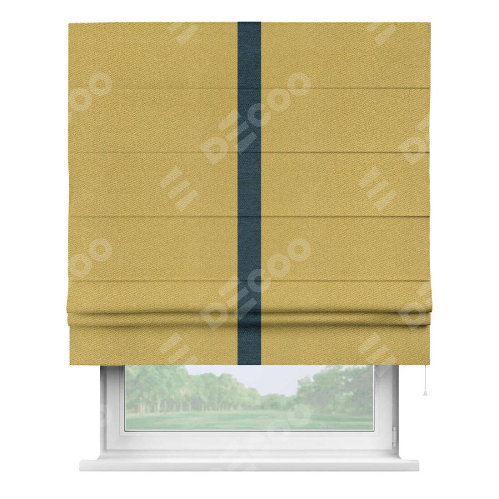 Римская штора производителя «Cortin», используется для проёма, пошита из ткани твид блэкаут пыльная горчица, артикул 21588. Отделка шторы кантом «Хайвэй», ткань для канта используется из твида разной расцветки на выбор. Имеет универсальный механизм и подходит для монтажа: на потолок, на стену и в нишу.