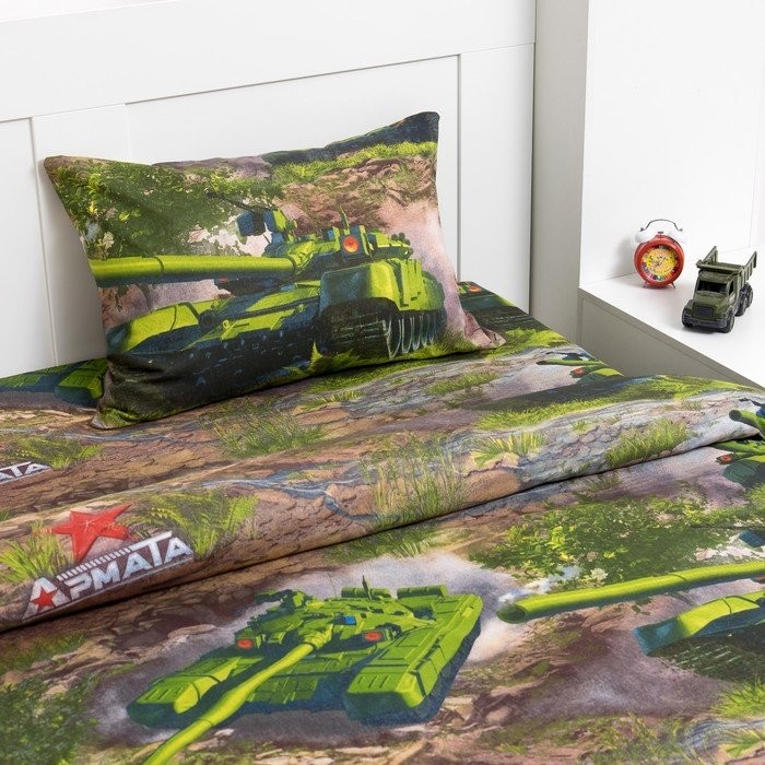 Постельное бельё «Этель» 1.5 сп Танки 143*215 см, 150*214 см, 50*70 см, бязь 125 г/м2
