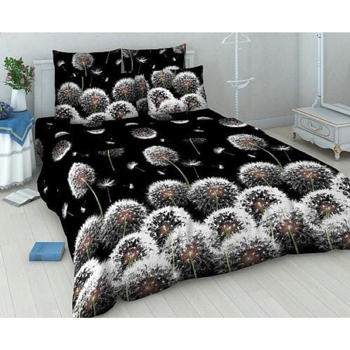 Постельное бельё 1,5 сп. «Василиса» Белые одуванчики, 145×215 см, 150×214 см, 70×70 см — 2 шт.