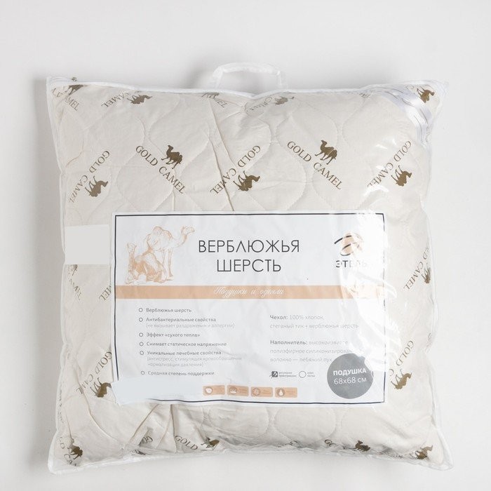 Подушка состоит из наполнителя из верблюжьей шерсти и нежнейшего лебяжьего пуха. Подушка не только обеспечивает правильное положение тела ночью, но и: