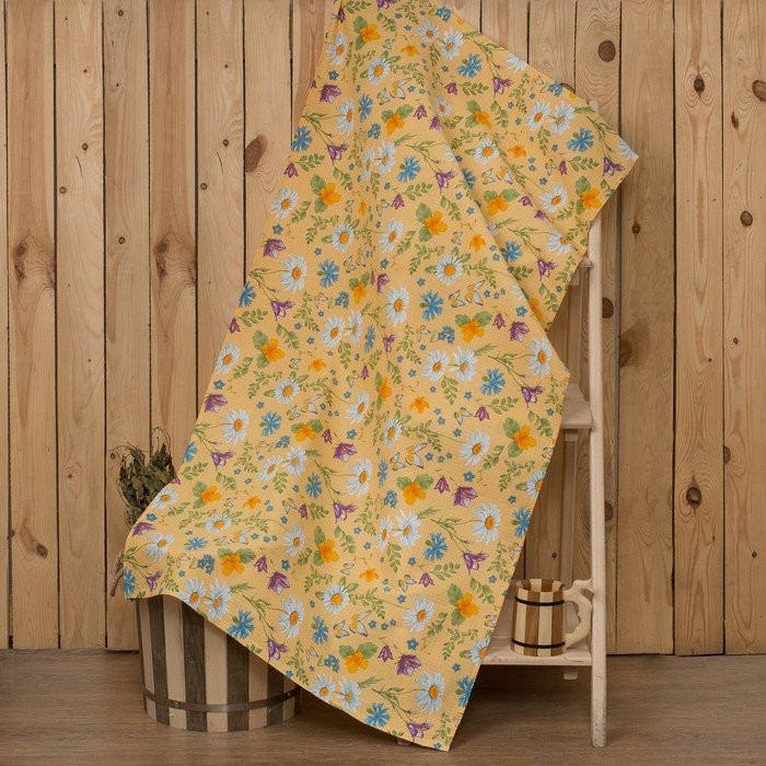 Полотенце для бани «Русское поле» 80×150 см, хлопок вафельное полотно