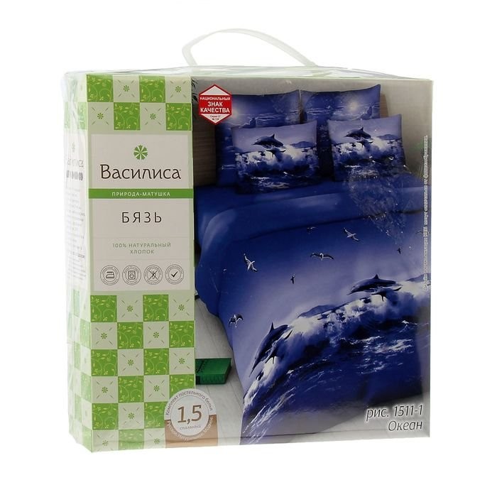 Постельное бельё 1,5 сп. «Василиса» Океан, 145×215 см, 150×214 см, 70×70 см — 2 шт.