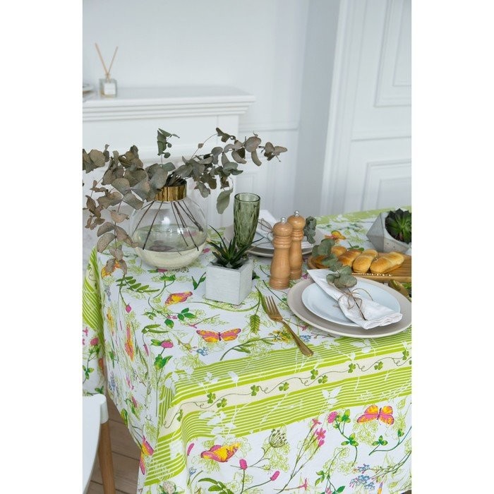 Приятная на ощупь скатерть из 100%-ного хлопка станет настоящей находкой для хозяйки! Материал-рогожка, из которого выполнено изделие, имеет плотную и упругую структуру, обладает высокой прочностью и на ура справляется с первостепенными задачами: