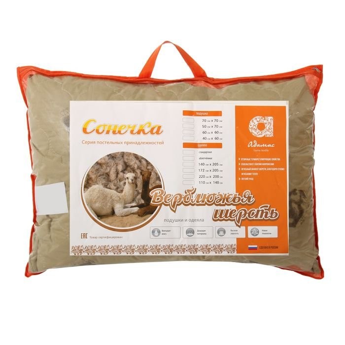 Подушка Адамас Сонечка Верблюжья шерсть 50*70см, чехол полиэстер, сумка
