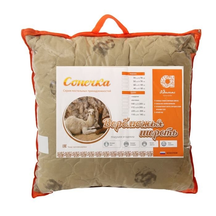 Подушка Адамас Сонечка Верблюжья шерсть 70*70см, чехол полиэстер, сумка