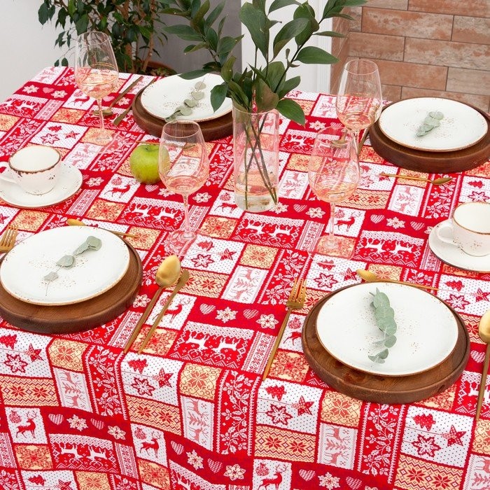 Скатерть «Доляна» Скандинавский рисунок 220*144 см, 100% хлопок, рогожка, 164 г/м2