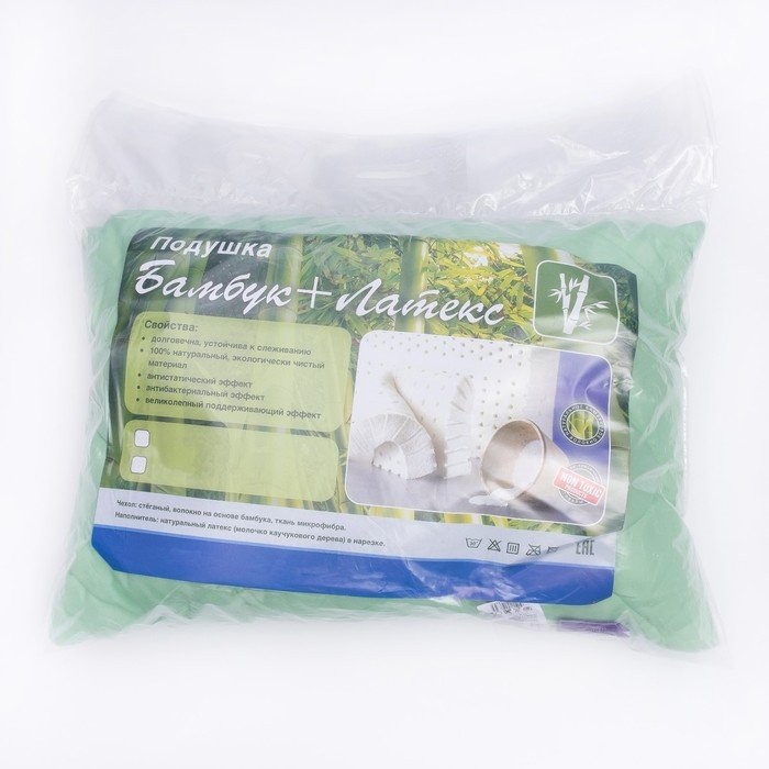 Подушка Бамбук+Латекс высокая 50×68 см зел., бамбуковое волокно/натур.латекс, микрофибра, пэ100% 2