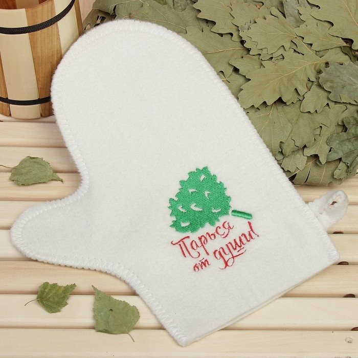 Рукавица для бани с вышивкой «Парься от души», первый сорт
