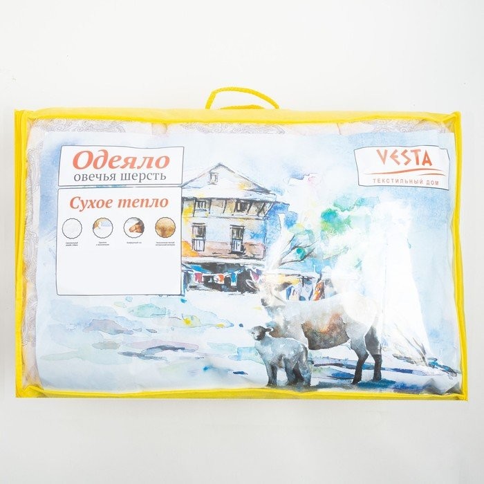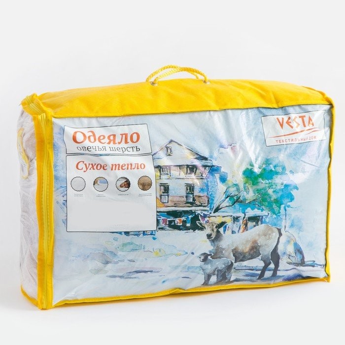 Одеяло зимнее 172×205, шерсть овечья, ткань тик, п/э 100%