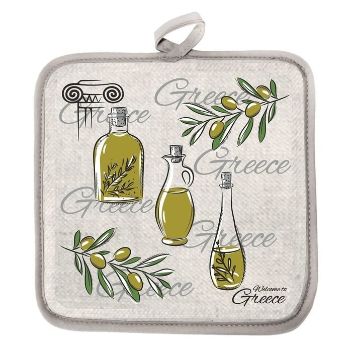Прихватка Олив. масло 18×18 полулён шелкография, 160г/м