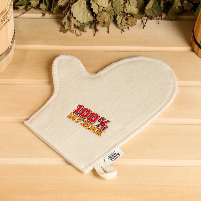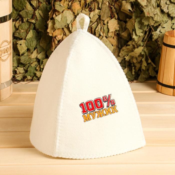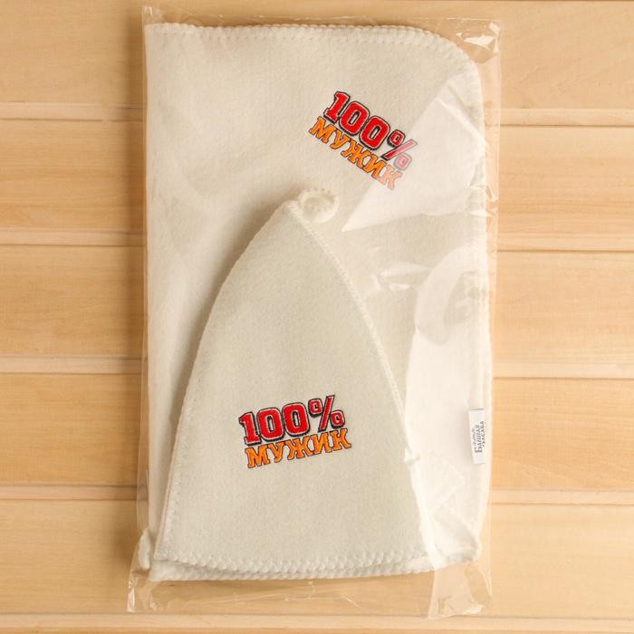 Набор для бани «100% Мужик» вышивка шапка, коврик и рукавица