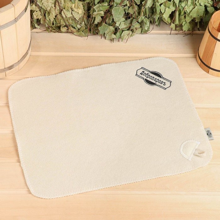 Коврик для бани и сауны, белый с черной вышивкой «ДОБРОПАРОВЪ», 45×35 см