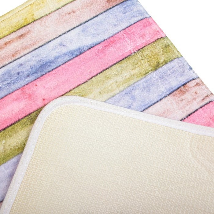 Вас удивит мягкая и нежная текстура коврика, а разнообразные яркие расцветки помогут оживить и дополнить уже существующий дизайн ванной комнаты. Отдельно порадует его низкая стоимость и высокое качество.