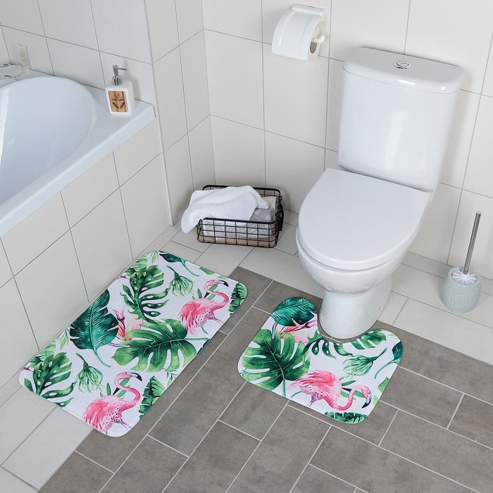 Набор ковриков для ванны и туалета Доляна «Фламинго», 2 шт: 40×43, 43×73 см