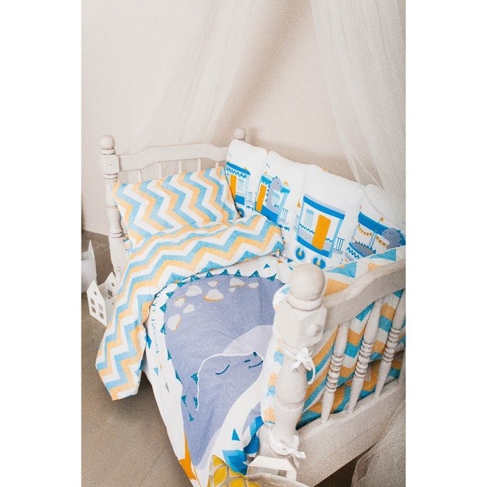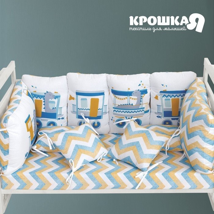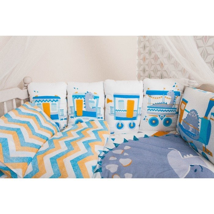 Бортики в кроватку Крошка Я «Динозаврик» (60х42см- 2шт, 30х42см- 4шт, 30х30см- 4шт), 100% хлопок