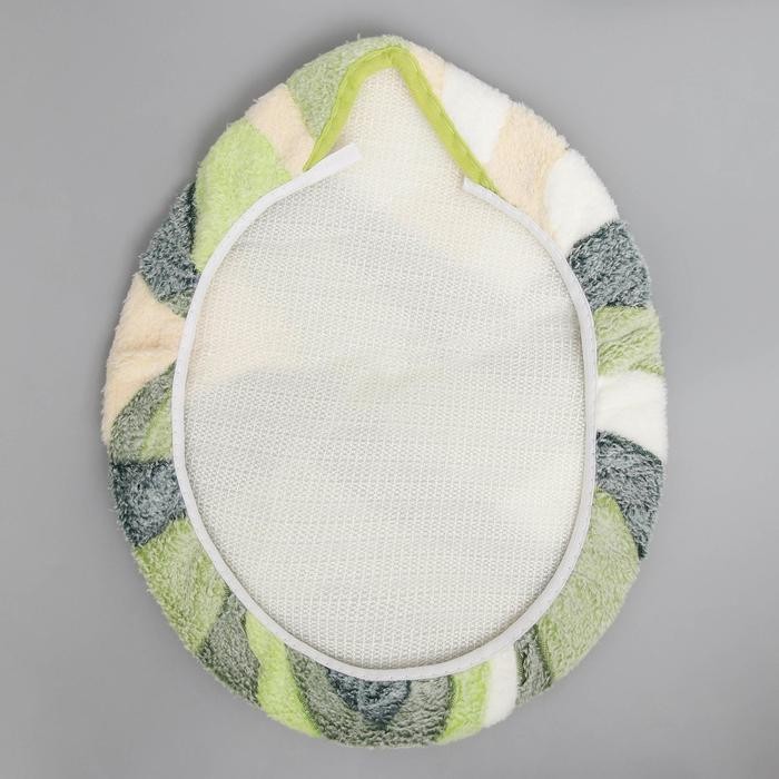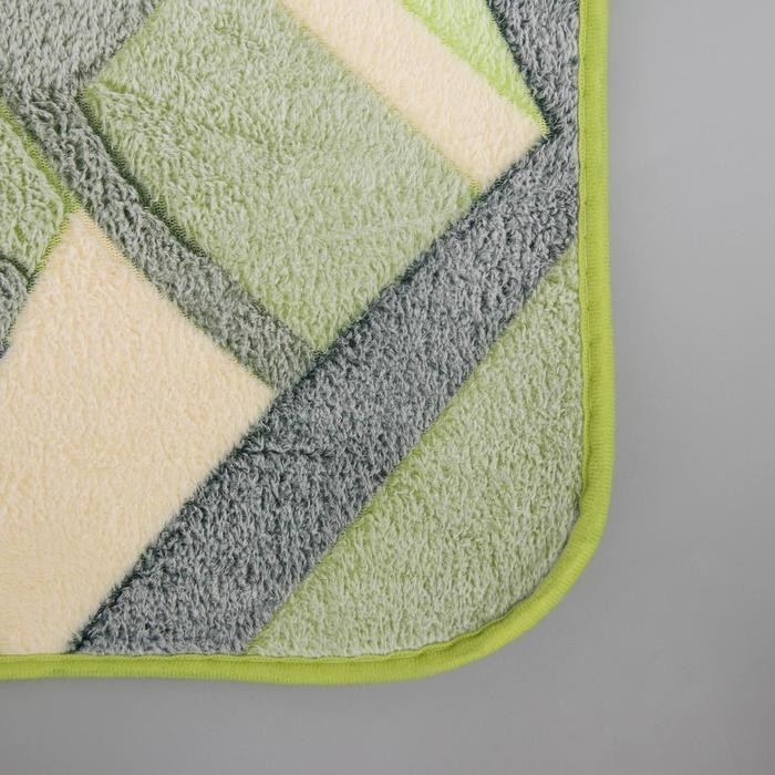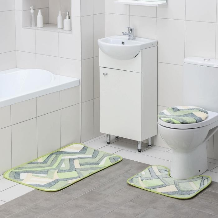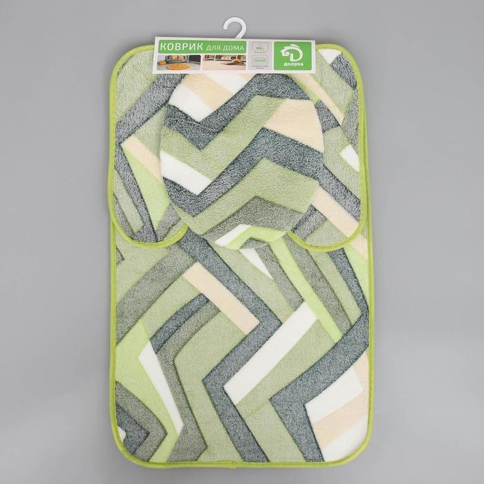 Набор ковриков для ванны и туалета Доляна «Геометрия», 3 шт: 35×39, 40×50, 50×80 см, цвет зелёный