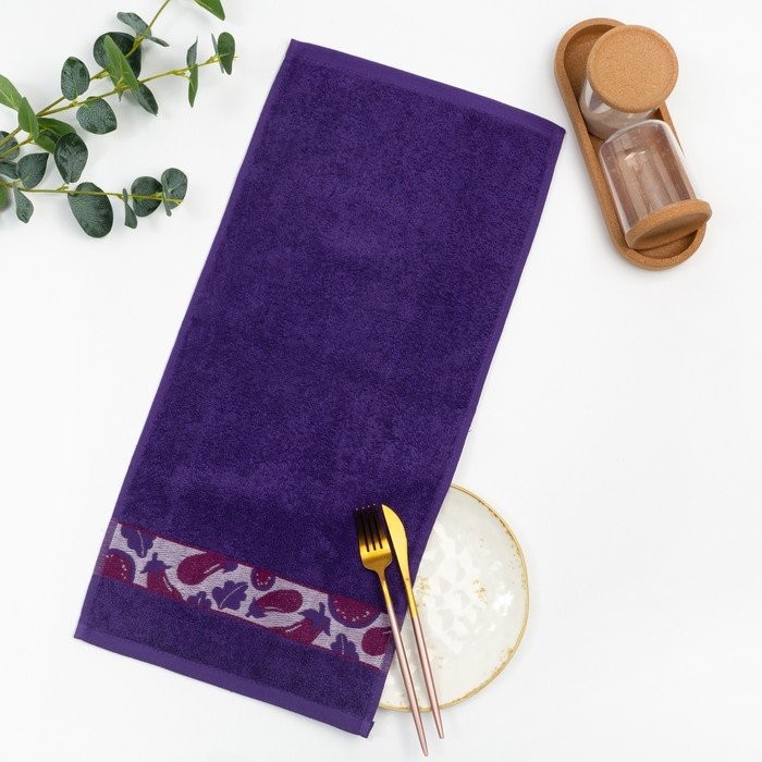 Полотенце махровое жаккардовое 30×60 см, баклажан, хлопок 100%, 340 г/м2