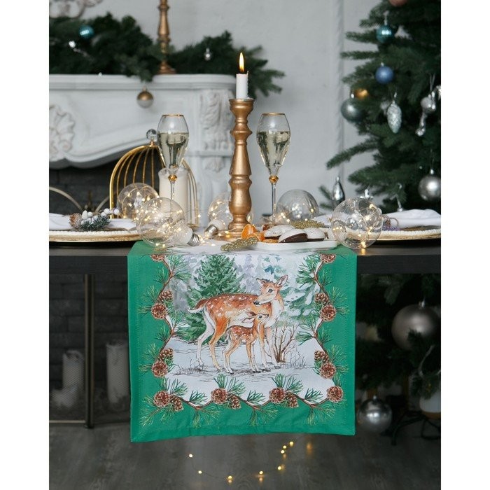 Дорожка на стол «Этель: Новогодний лес», 40 × 147 см, 100% хлопок, саржа, 190 г/м²