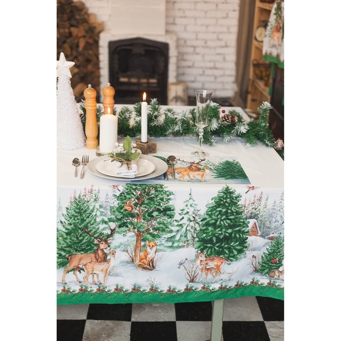 Скатерть «Этель» Новогодний лес 148×220 см с ГМВО, 100% хл, саржа 190 гр/м2