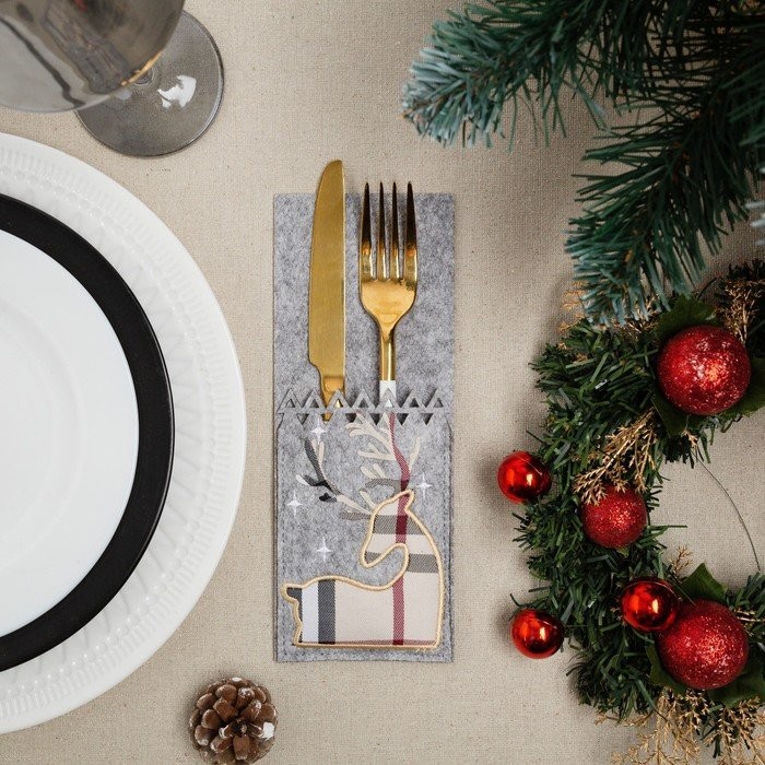 Конверт для столовых приборов «Олень» 8,5×21 см, 100% п/э, фетр