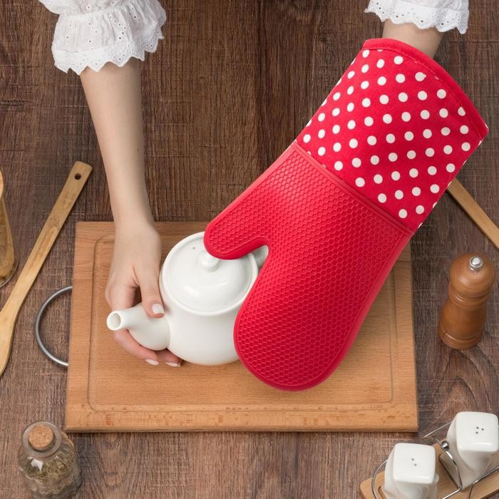 Варежка Доляна «Профи300» цв.красный, 18×33 см, 100% п/э, силикон